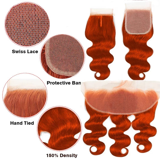 #350 Ginger Orange Body Wave Bundle - 13x4 HD Lace Closure & Bundles