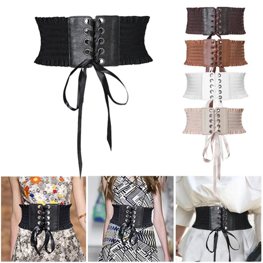 1 Pcs Elastic Belts For Woman Stretch Wide Belt Tassels Elastic Buckle Wide Dress Corset Waistband Women's High Waist Belt