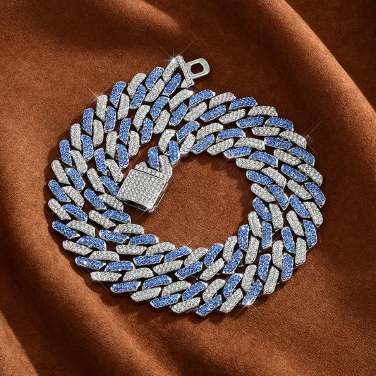 13MM Shiny Cuban Link Chain Necklace Silver Rhinestone Iced Out Punk Jewelry for Women Men Hip Hop Fashion Birthday Gift