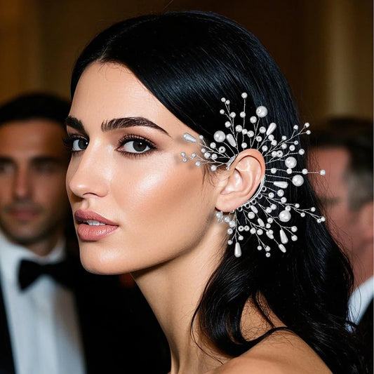 Super Fairy Bridal Earrings Handmade Pearl Rhinestone Ear Clip Forest Flower Ear Bone Clip Design Sense and Temperament Ear Hook