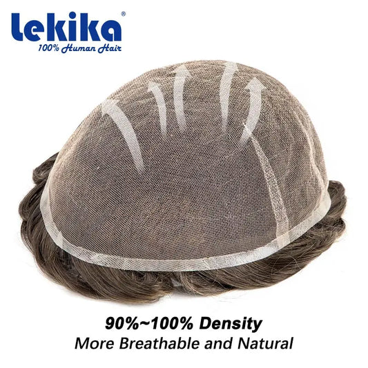 Full Swiss Lace Toupee Ultra Delicate AIR-Lace Male Hair Prosthesis Breathable 100% Natural Human Hair System Unit Mens Wig