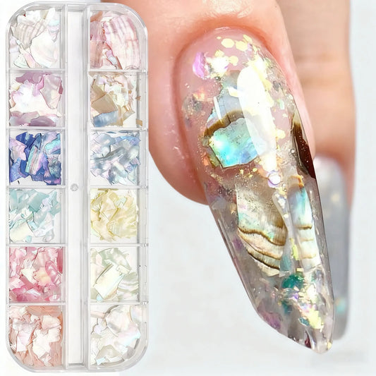 12 Grid Glitter Shiny Abalone Shell Flakes For Nail Art Decoration 3D Charms Sea Shell Slices DIY Manicure Paillette Accessories