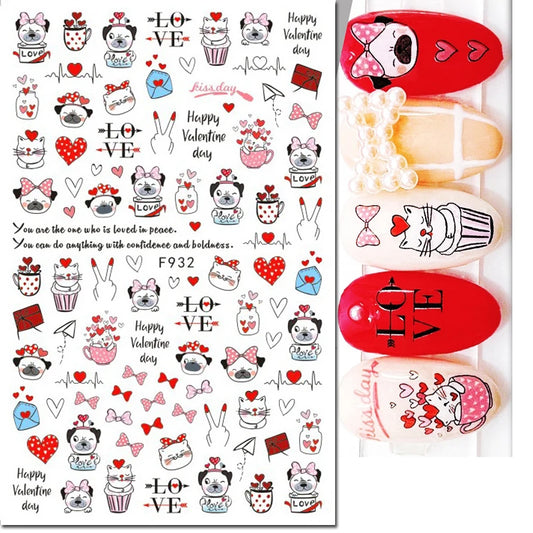 3d Pink Hearts Balloon Valentine Day Love Letters Nail Art Stickers Adhesive Sliders Nail Decals Decoration Manicure Accessories