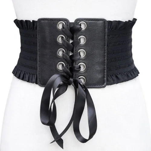 Elastic Belts for Woman Fashion Stretch Wide Belt Tassels Elastic Buckle Wide Dress Corset Waistband Women's High Waist Belt