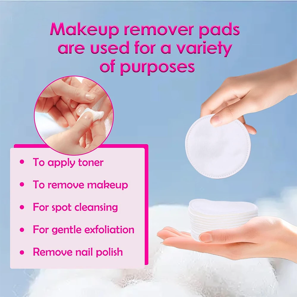 Multi-purpose beauty use: pads cotton suitable for makeup removal, nail polish removal, toner application, facial cleansing, exfoliation, skin cleansing, eye care, DIY facial mask, etc. These multi-purpose makeup pads are a must-have in every skin care step