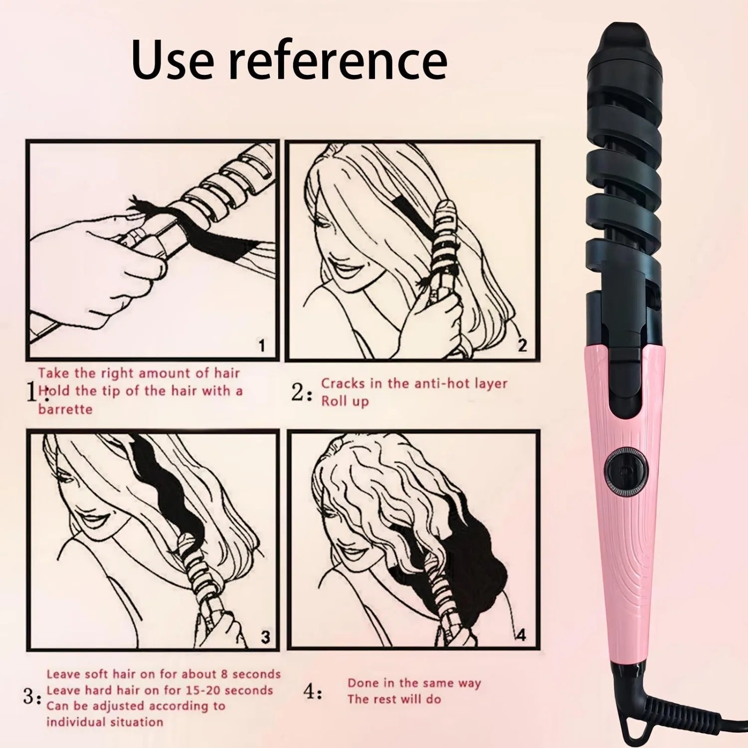 One-Click Automatic Curling. No skill is required, just put the right amount of hair into the curling tube, press the button and hold for a whlie, then you can get beautifal curls.