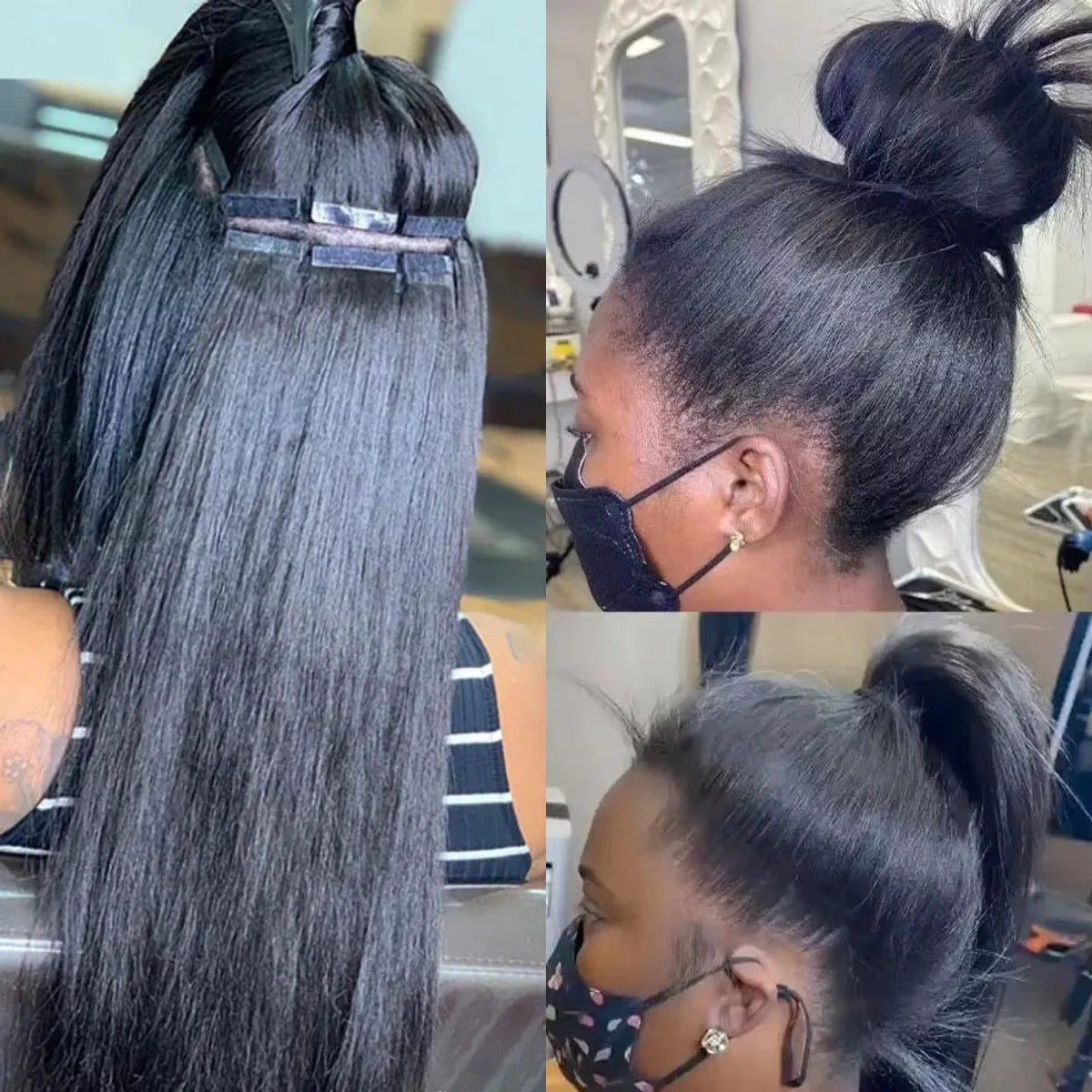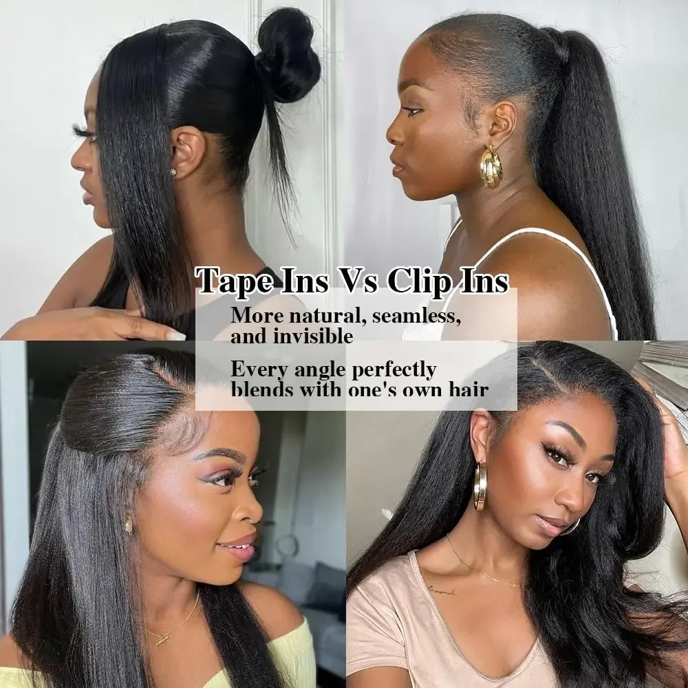 20/40/60pcs Kinky Straight Tape In Hair Extensions Adhesive Invisible Tape In Human Hair Extensions Yaki Straight Brazilian Hair