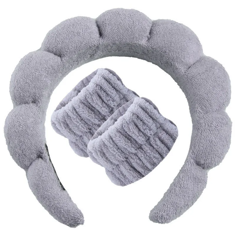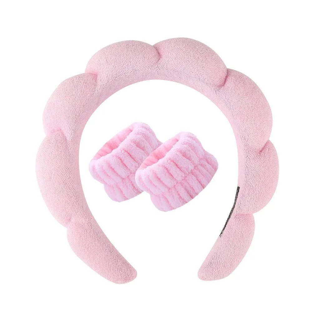 3 Piece Luxury Fiber Spa Headband and Wristband Set - Soft and Comfortable - Face Wash, Makeup Women's Hair Accessories Set