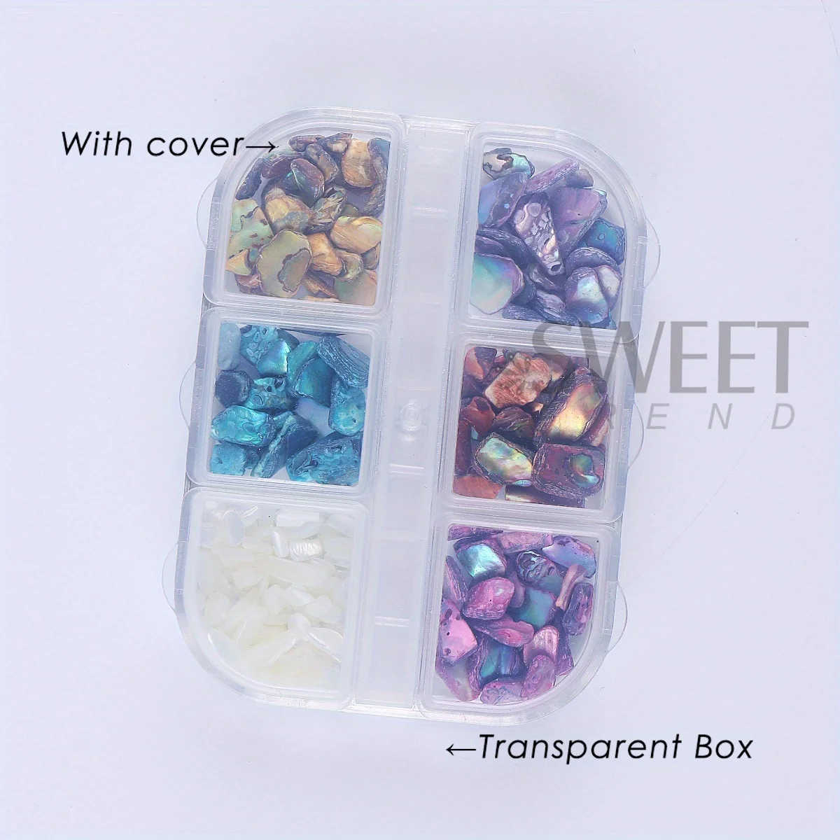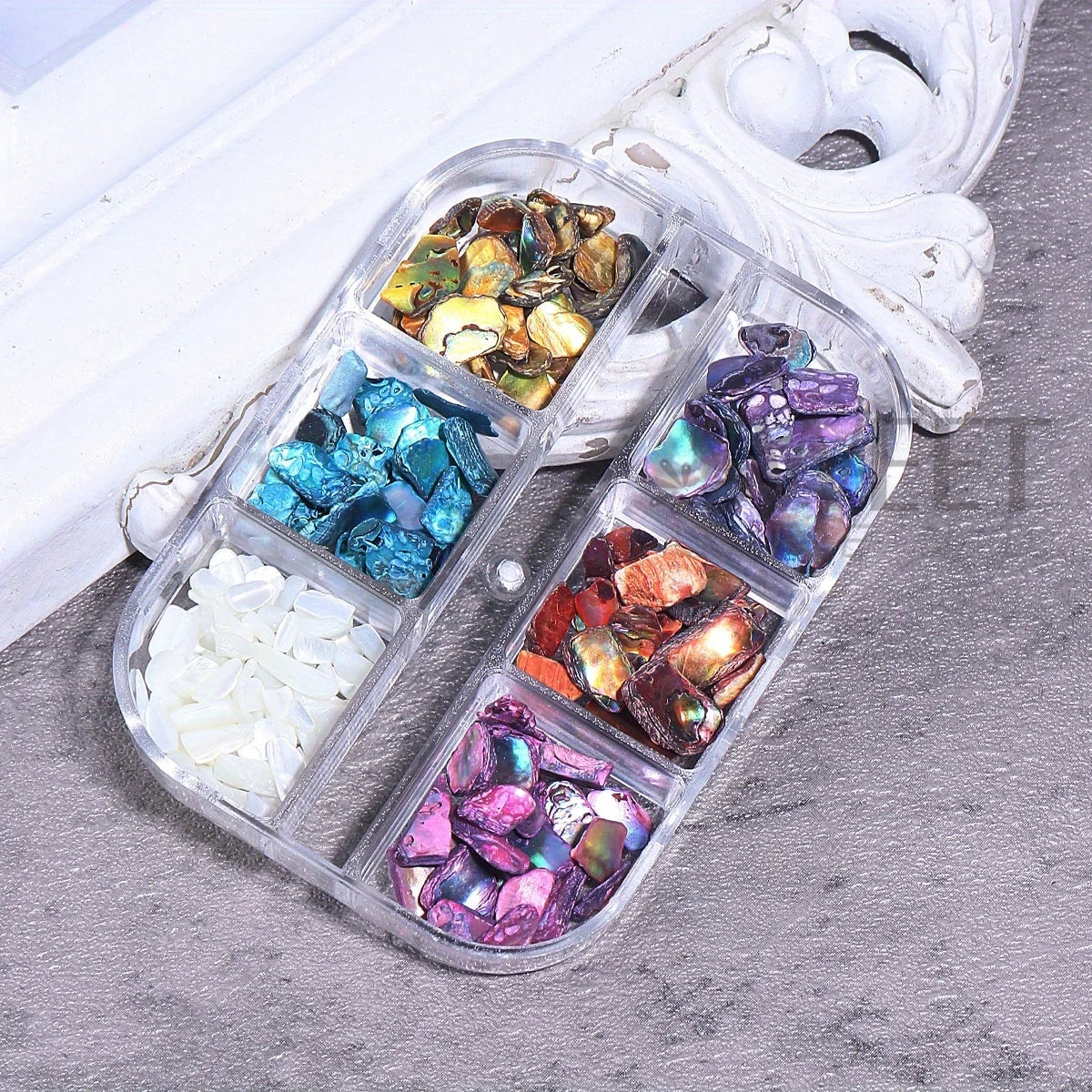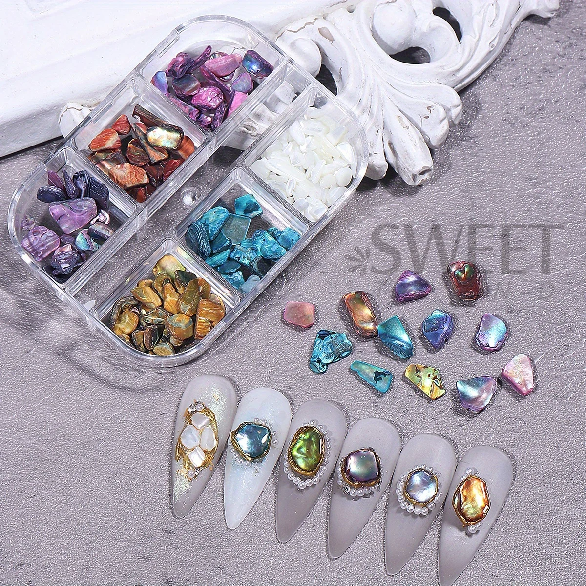6 Grids Natural Abalone Stone Nail Decoration Aurora Shell Pearl Effect Irregular Gemstone Luxury Retro Style Jewelry Nail Art Accessories
