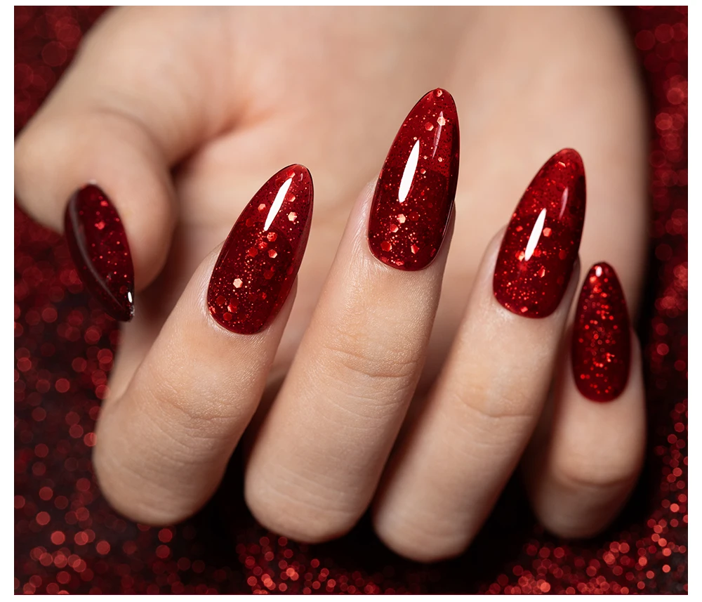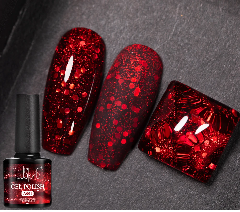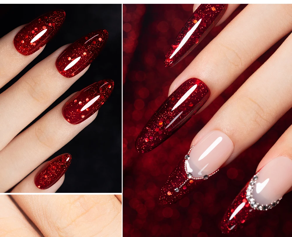 7.5ml Red Glitter Gel Nail Polish Crystal Semi Permanent Soak Off UV Gel Varnish Nail Art Manicure Base Matte Top Coat Vernis