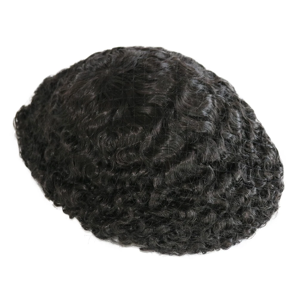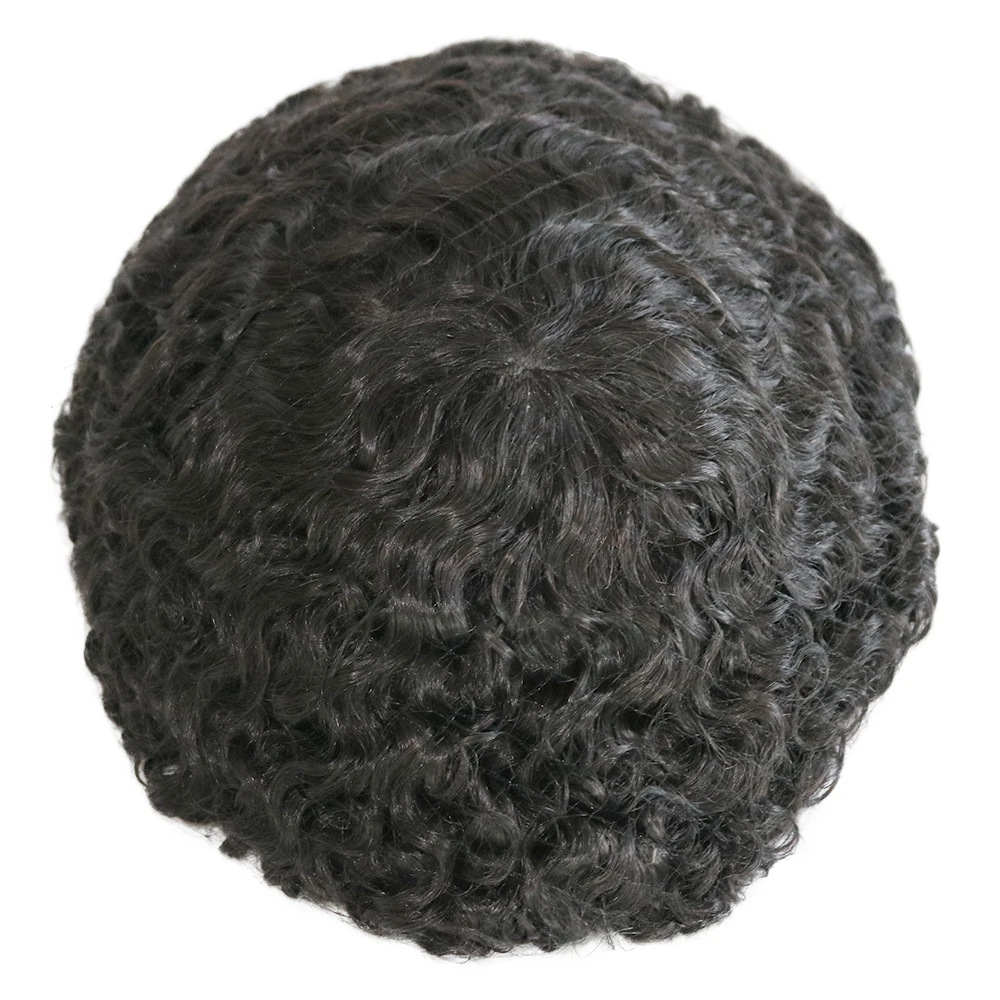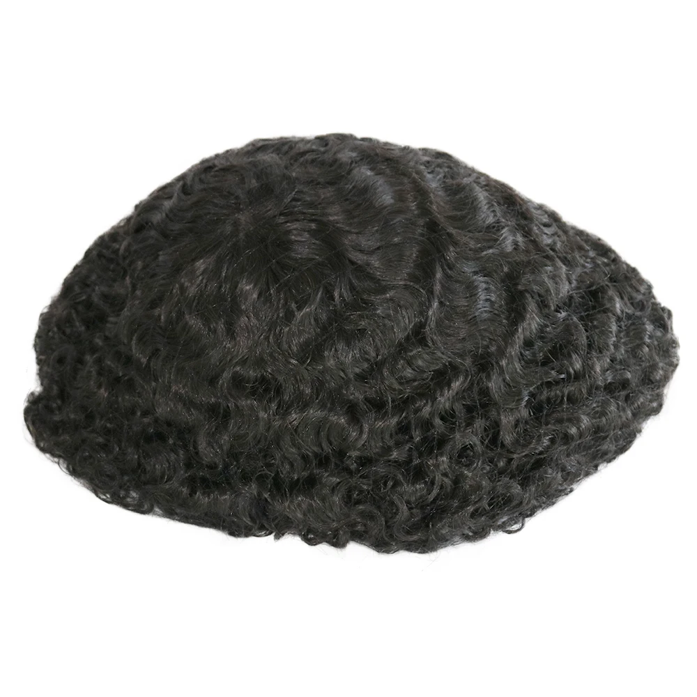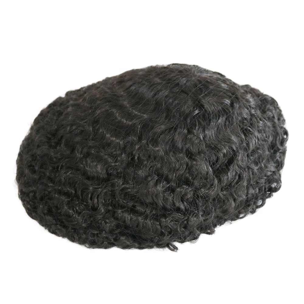 Afro Men Deep Wave 15mm 360 Weaves 100% Human Hair Toupee Hair Replacement Capillary Prosthesis MONO/POLY Base for Options Wig