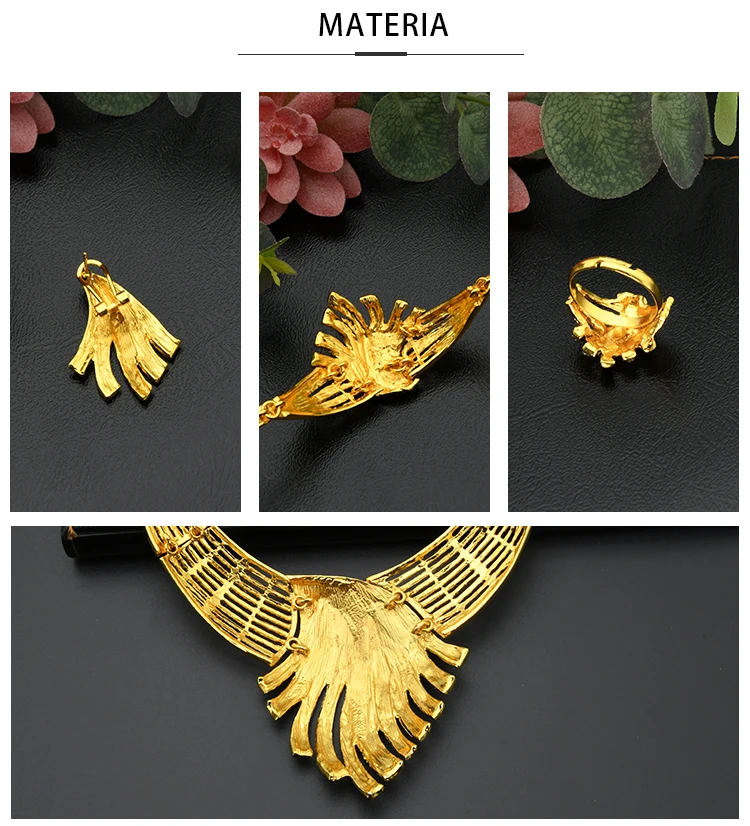 ANIID Nigerian Jewelery Set Wedding Jewelry For Women Dubai 24K Gold Color Jewlery African Designer Earrings Bridal Necklace
