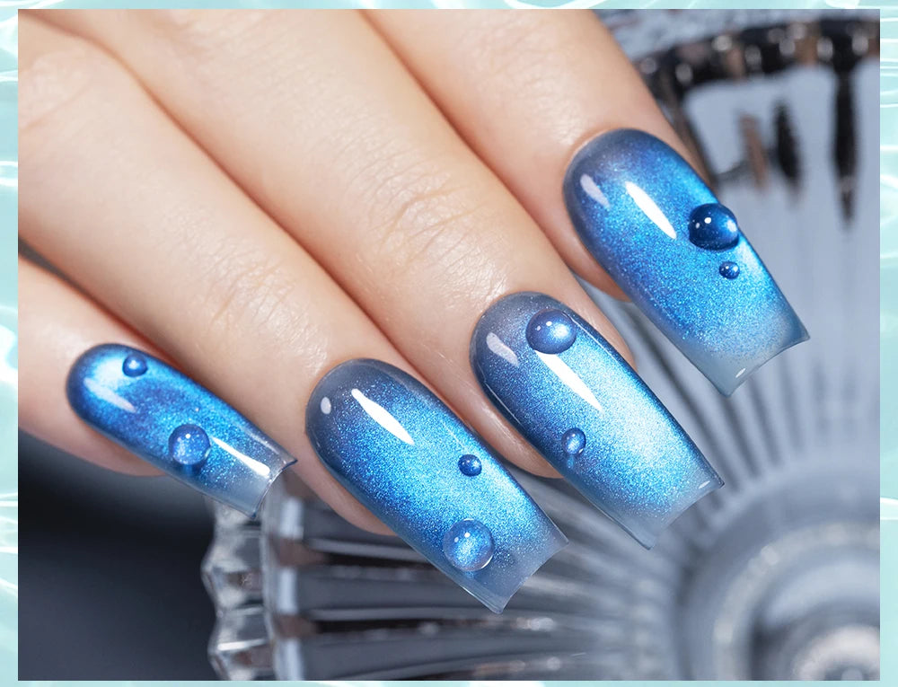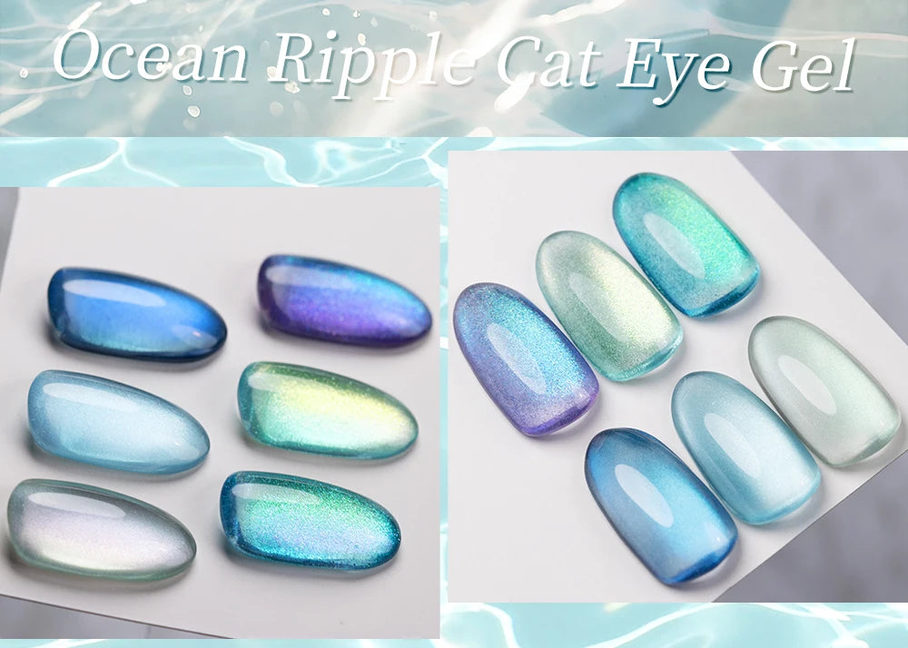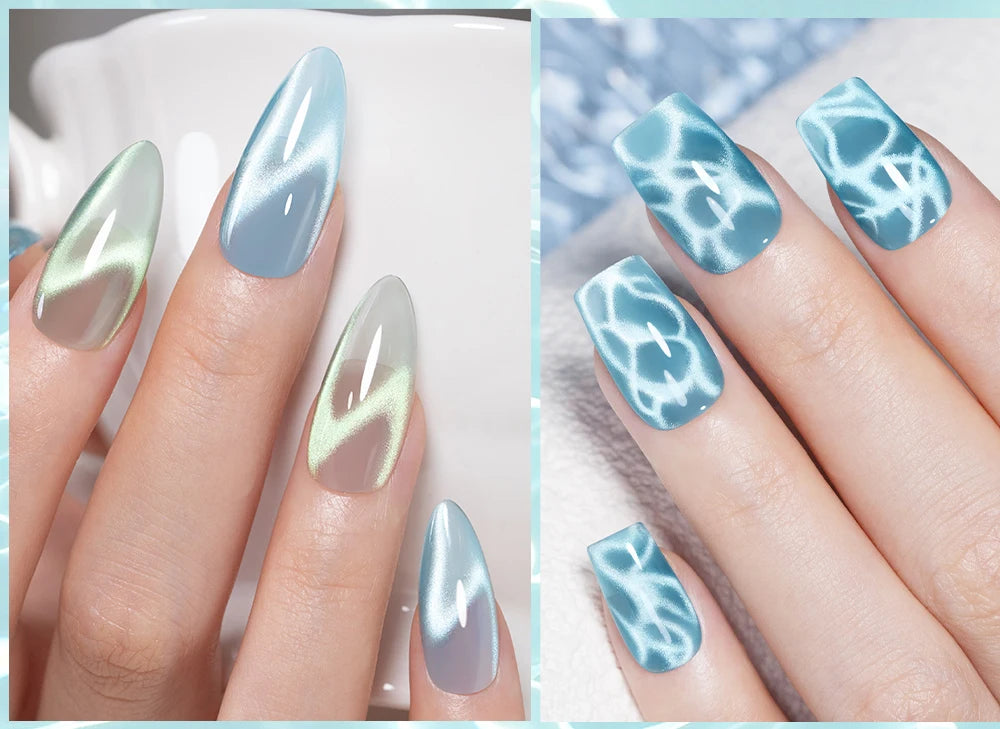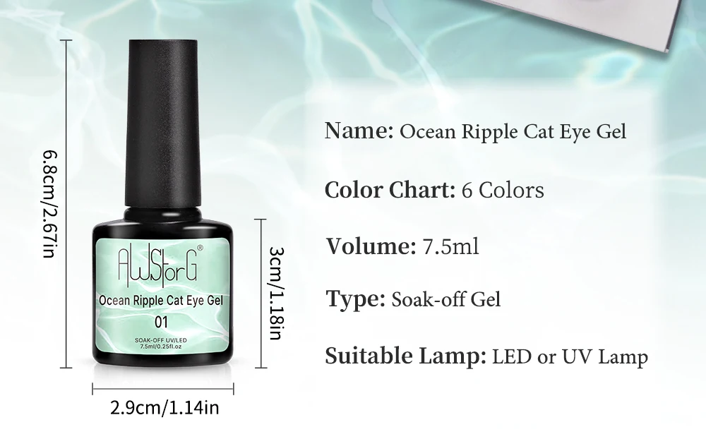 AWStorG 7.5ml Ocean Ripple Cat Eye Gel Kit Shiny Blue Green Glitter Cat Magnetic Gel Nail Polish Soak Off UV Nail Art Varnish