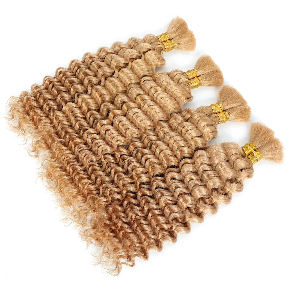 Blonde Human Braiding Hair for Boho Braids Highlights No Weft Virgin Brazilian Curly Deep Wave Bulk Hair Extensions for Braiding