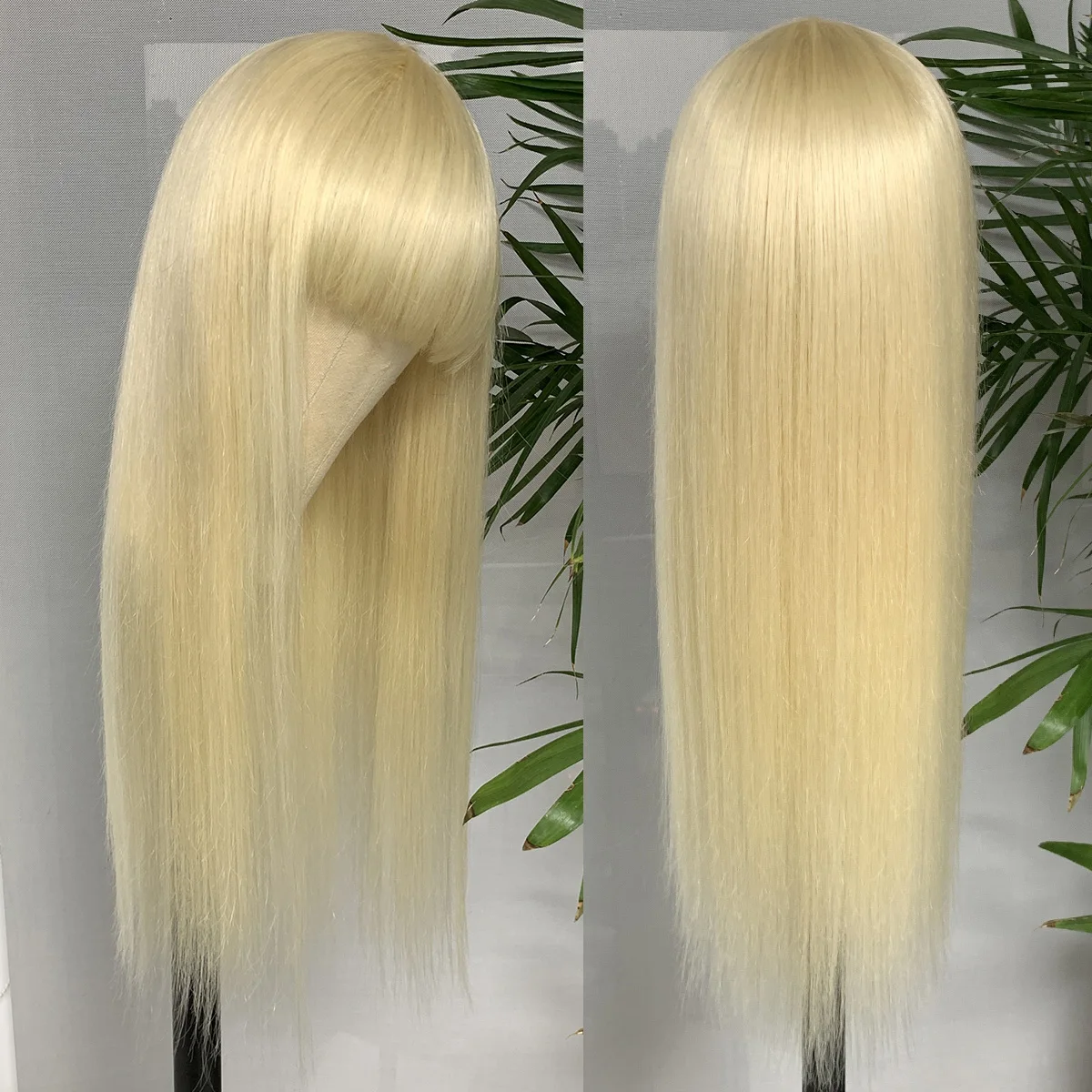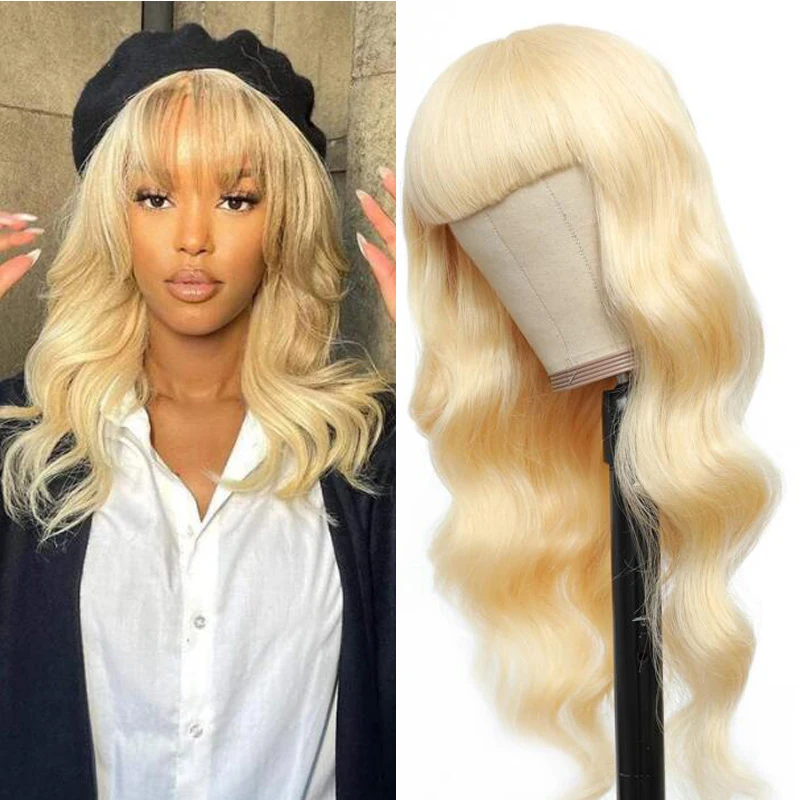 Blonde Human Hair Wig with Bangs 613# Full Machine Straight Human Hair Wigs Glueless Human Wigs Fringe Wigs For Woman HairUGo