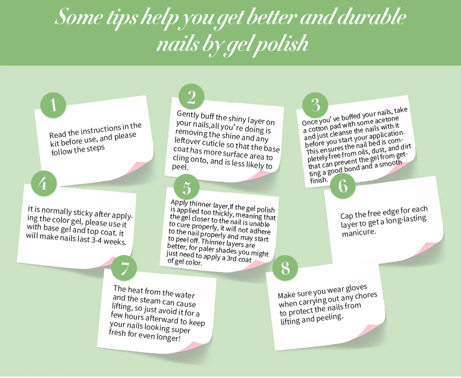 Long lasting for at least 15-21 days, fantastic and super bright nails for you.