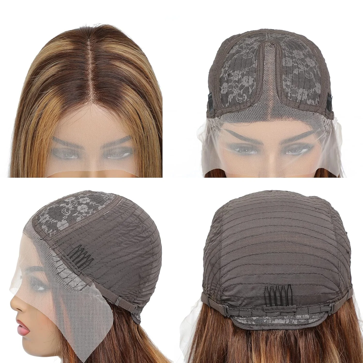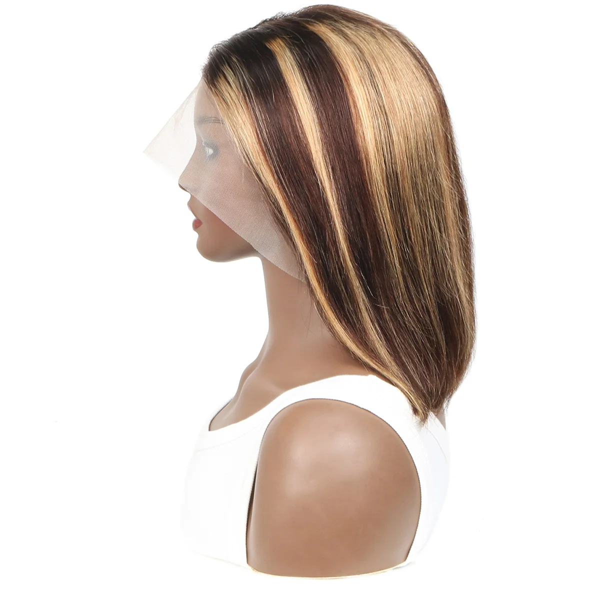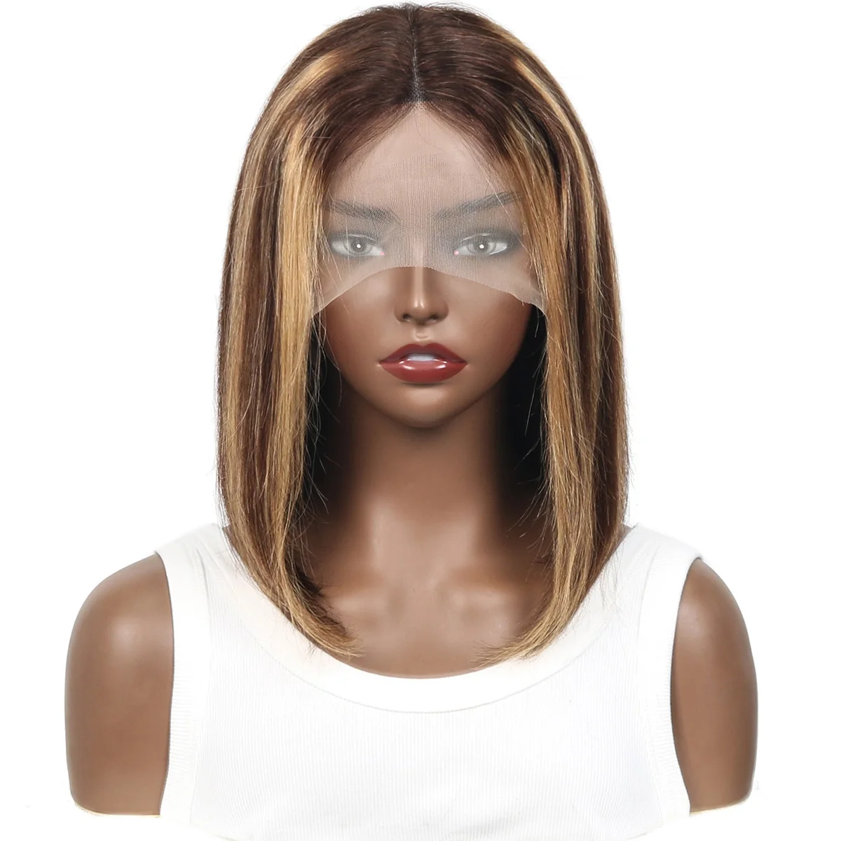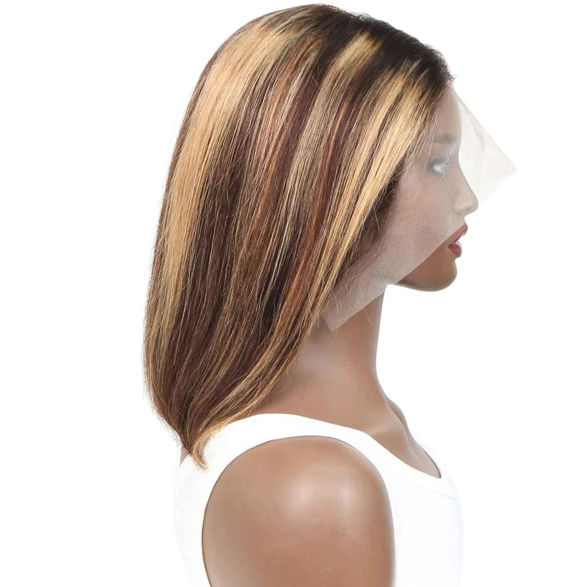 Brazilian 4x4 Lace Closure Wig Highlight Colored Human Hair Wigs Highlight Brown Bob Wigs Straight Remy Hair 180 Density On Sale