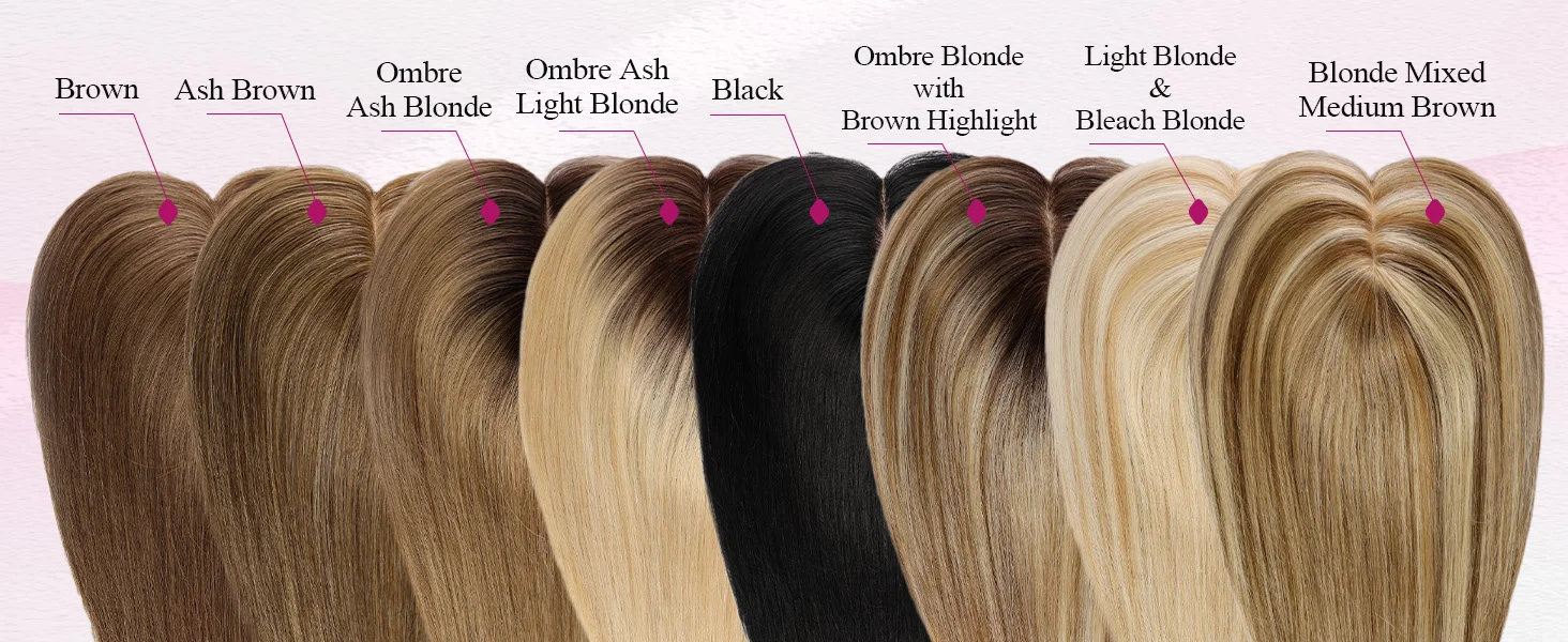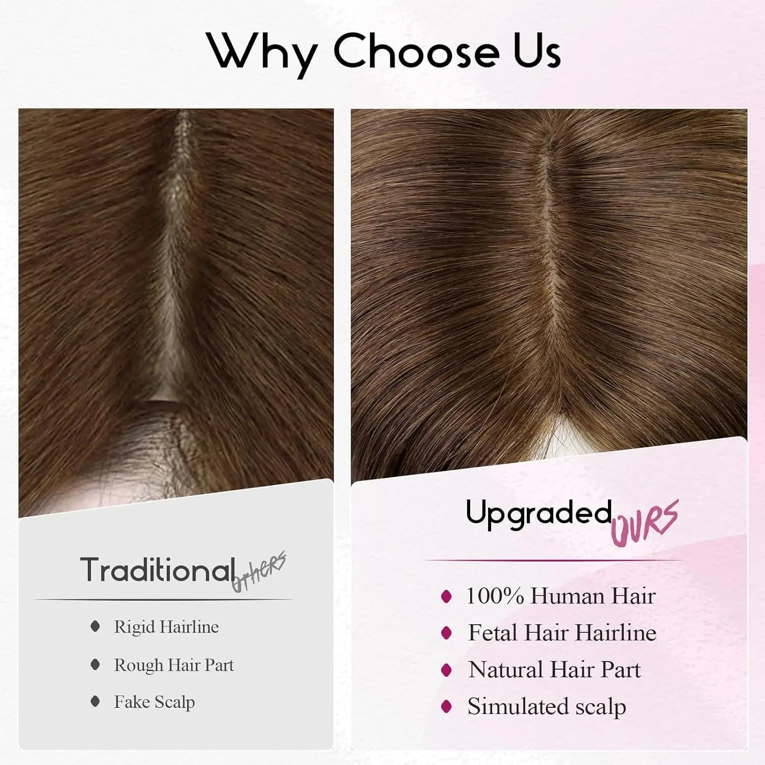 Brown Mixed Blonde Human Hair Topper with Bangs Natural Silk Straight Clip in Hair Extensions for Women with Thinning Hair 12 In