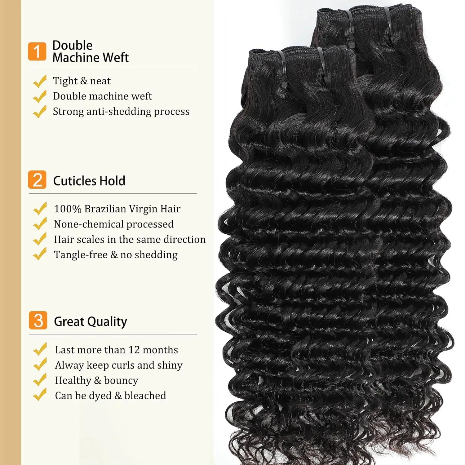 Burmese Curly Bundles Human Hair 18-26 Inch Deep Wave Raw Hair Bundles 100% Unprocessed Double Weft Hair Extensions Weave Water