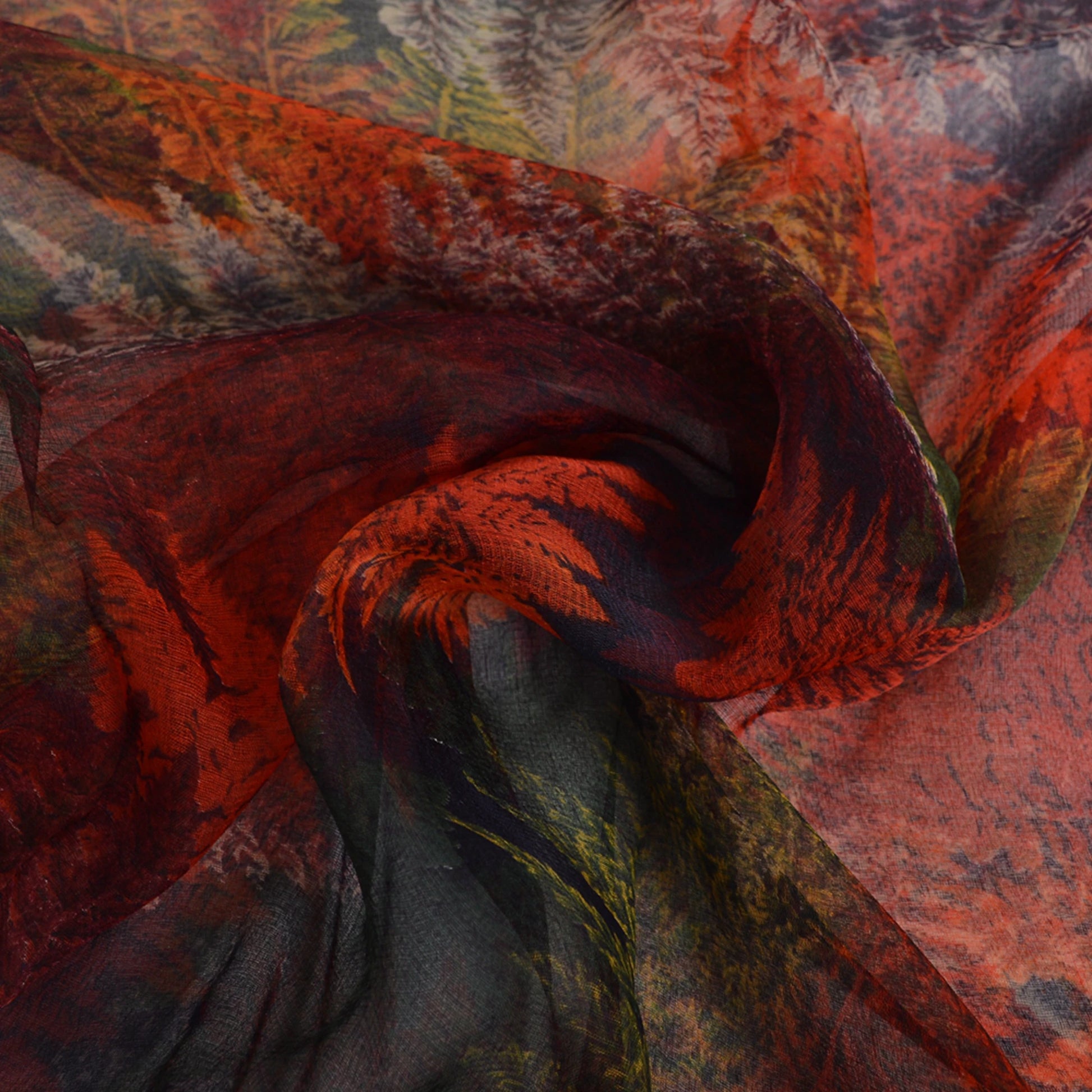 [BYSIFA] Red Black Women Long Silk Scarf Printed 170*105cm Fashion Leaves Pattern Brand 100% Pure Silk Shawl For Spring Autumn