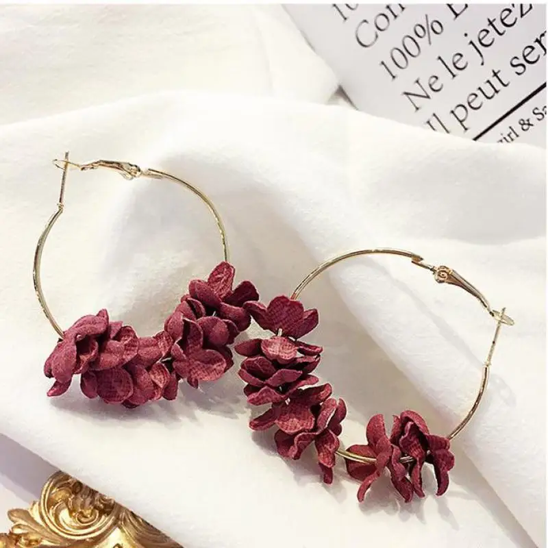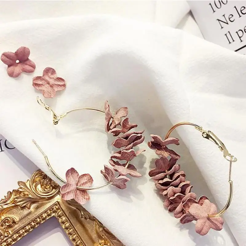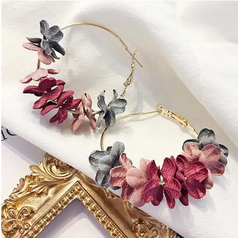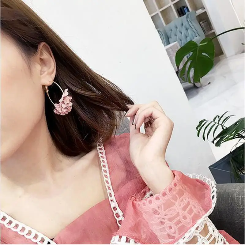 Charm Korean Fashion New Earrings Temperament Hot Selling Fabric Flower Earrings Women Wholesale Women Steel Earrings