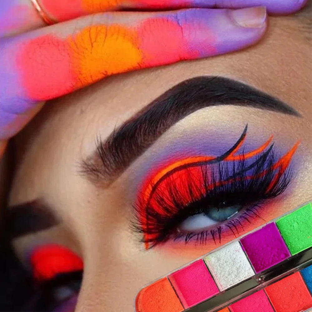 Eyeshadow Palette 12 Colors Matte Neon Fluorescent Pigment Metallic Makeup Palette Glitter Eye Shadow Palette Nail Art Powder