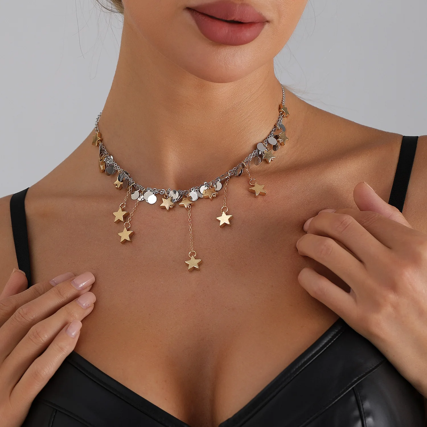 Geometric Multi Star Charm Necklace Women's Luxury Fashion Spicy Girl Style Jewelry Accessories