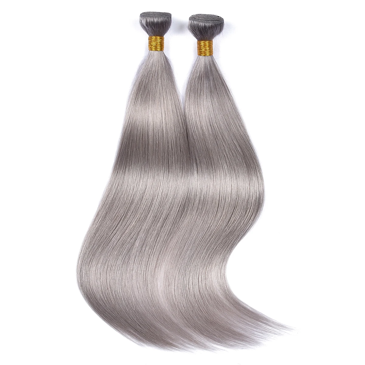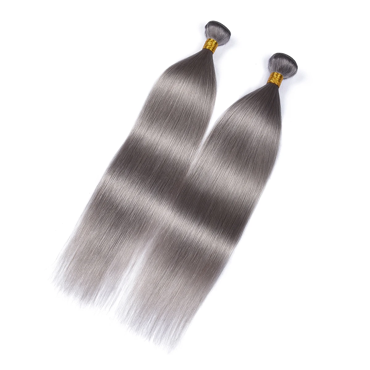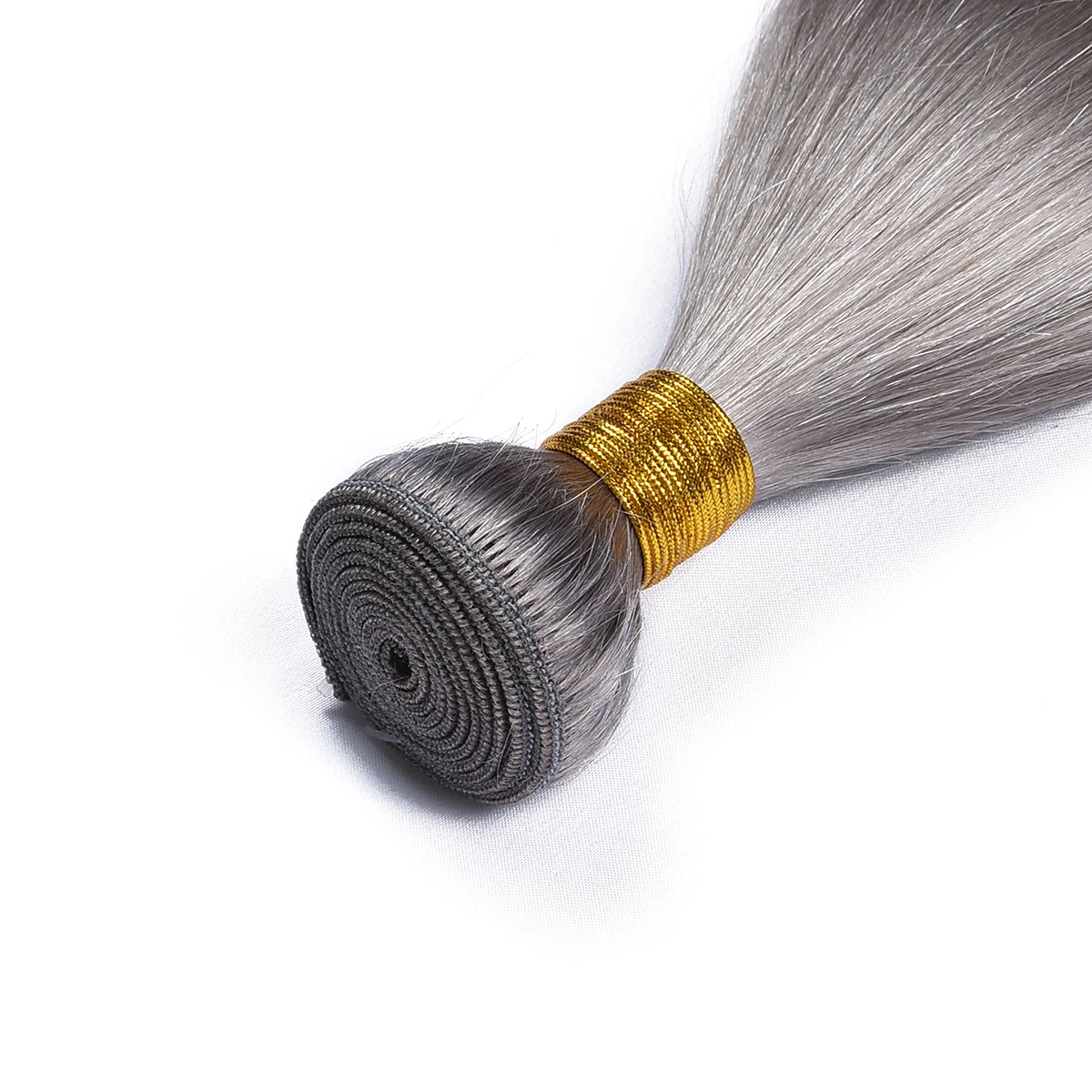 Gray Hair Weft Bundles Brazilian Grey Straight Human Hair Bundles Three Pieces Hair Weaving HairUGo Brazilian 10-30 Inches