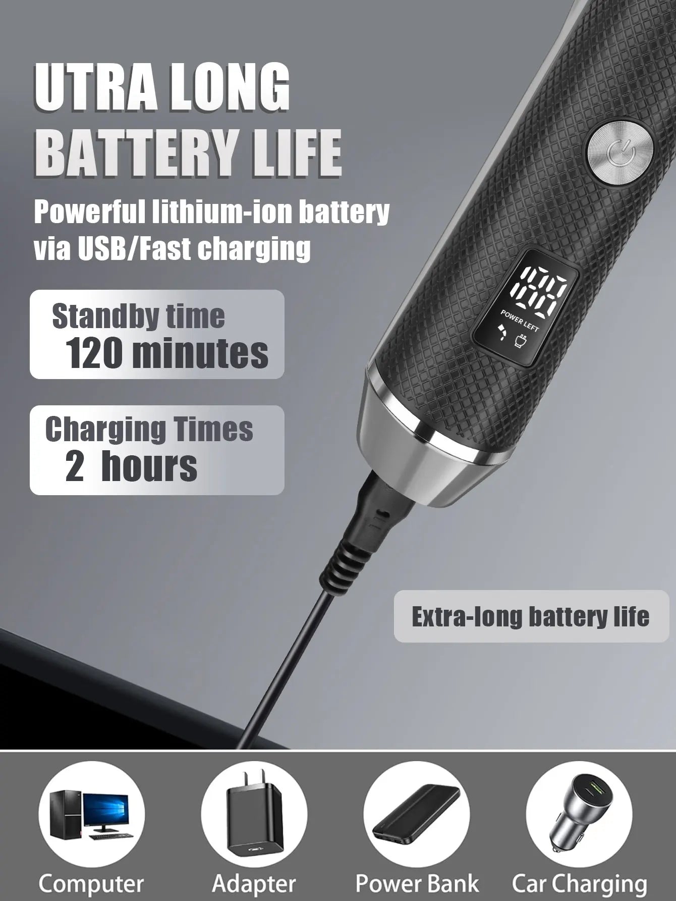 Function: Electric length adjustment,wet haircut,dry haircut,floating head,Automatic power selection based on bristle density,Automatic cleaning,Washing knives under water,Fast Charging,Charging indication,Battery operation