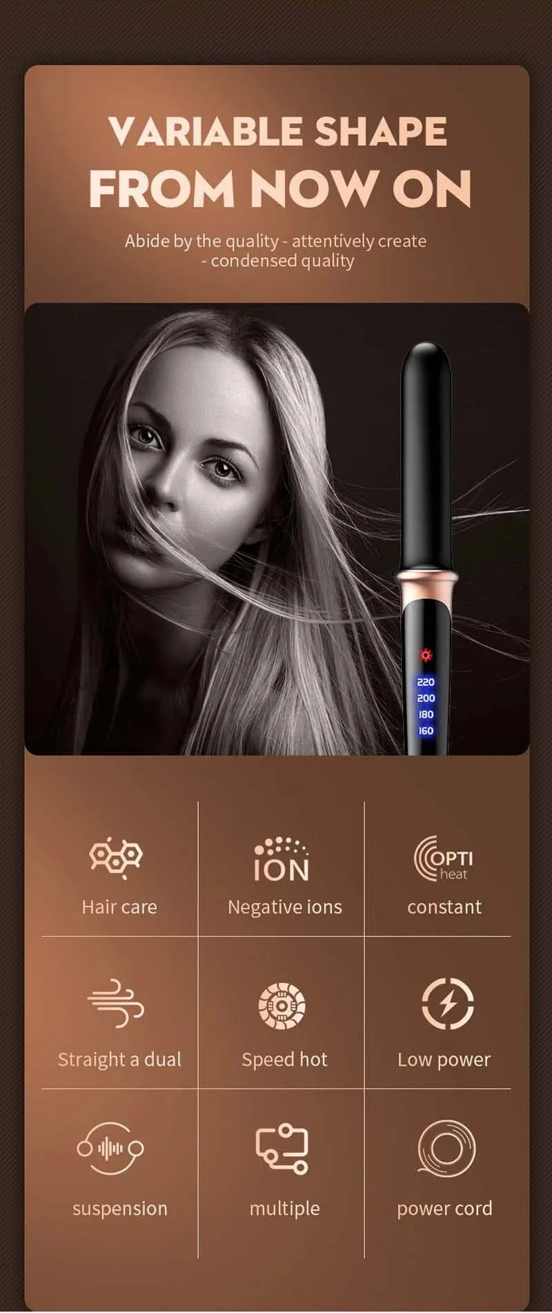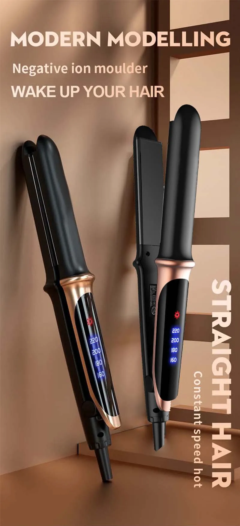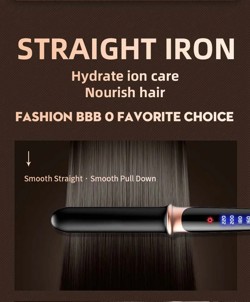 LED digital temperature display, the temperature can be adjusted from 160℃-180℃-200℃-220℃, and the appropriate temperature can be selected according to the hair quality.