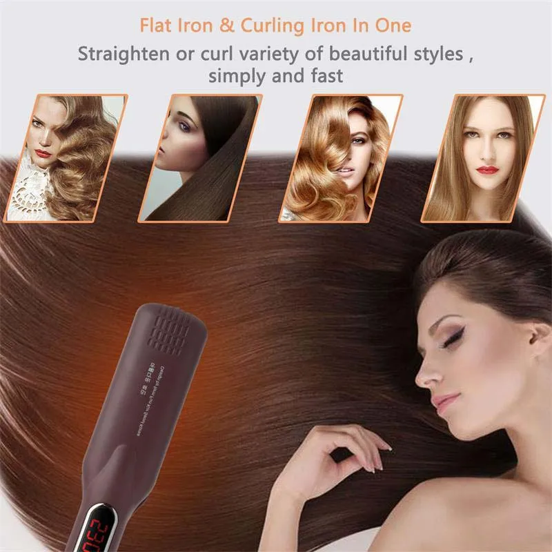 Hair Styler Flat Iron Curling Iron Hair Curler 2 in 1 with LCD Display Heating Plate Hair Straightener