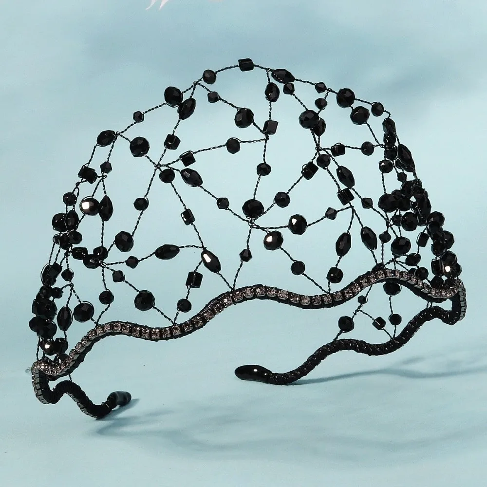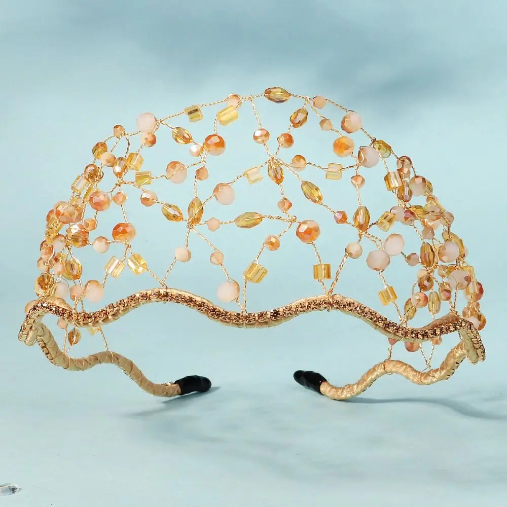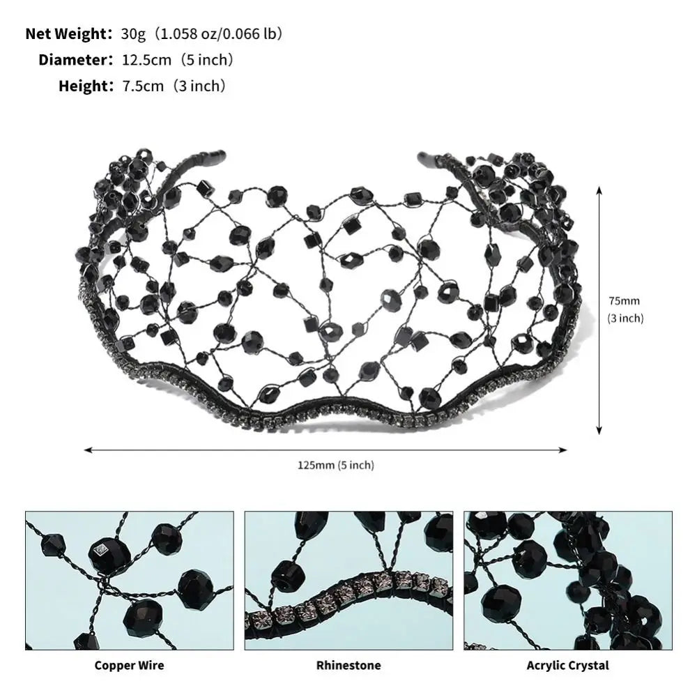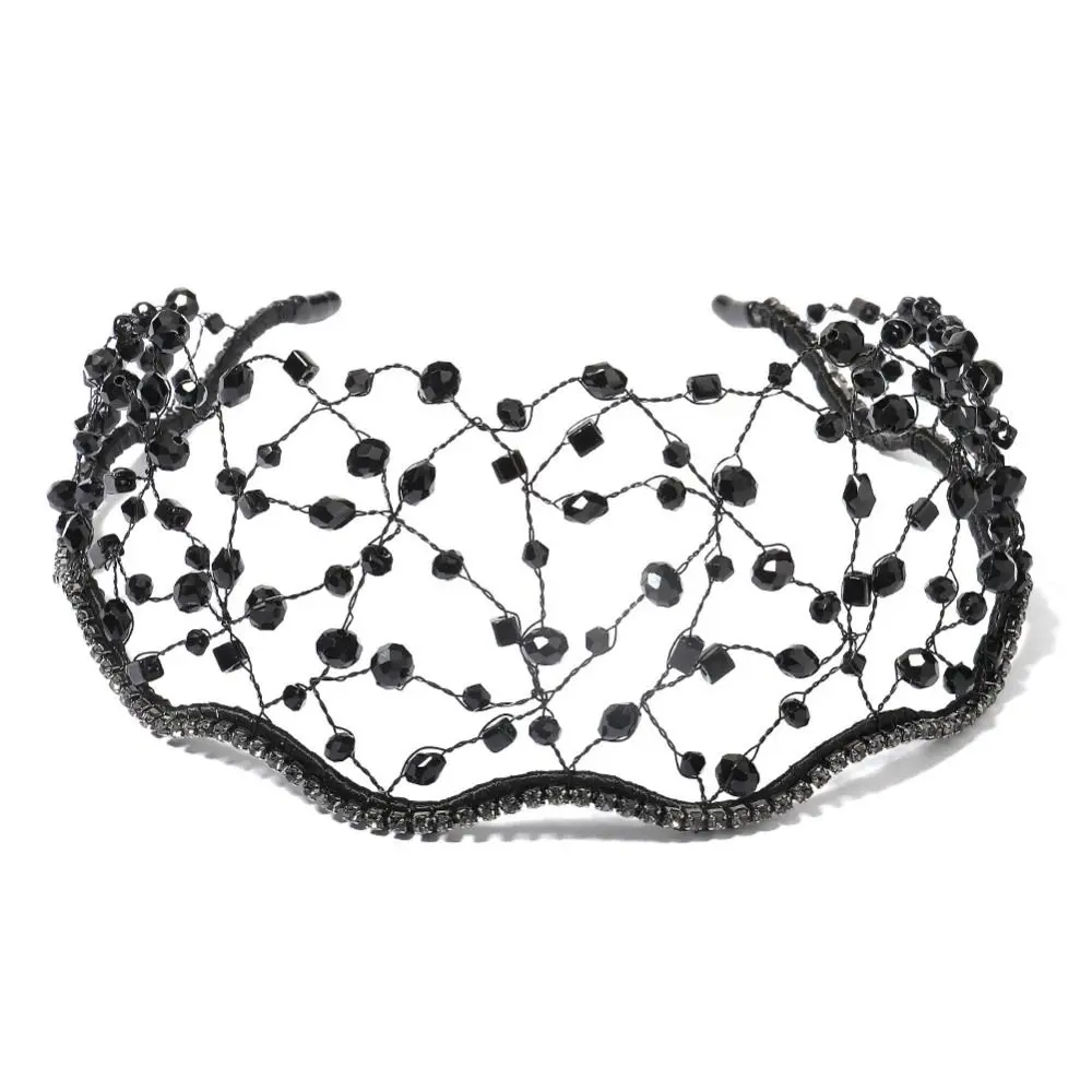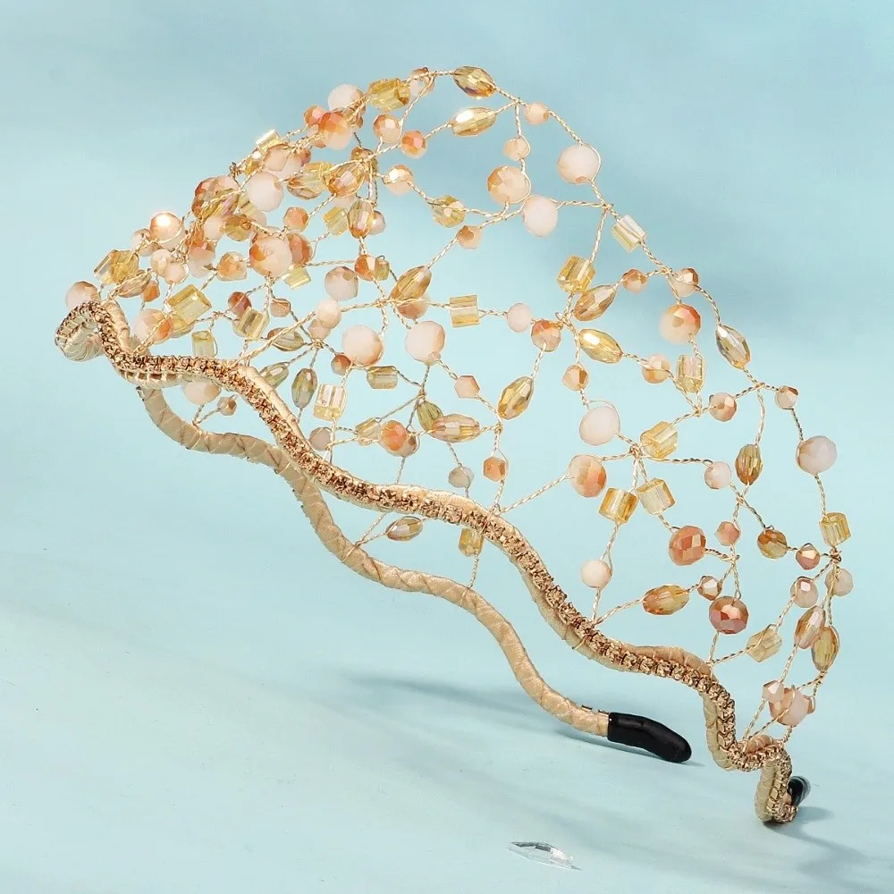 Handmade Crystal Beads Hair Net Crown Wedding Headpieces Hair Jewelry Sparkling Rhinestone Tiara Hair Hoop Elegant Headbands