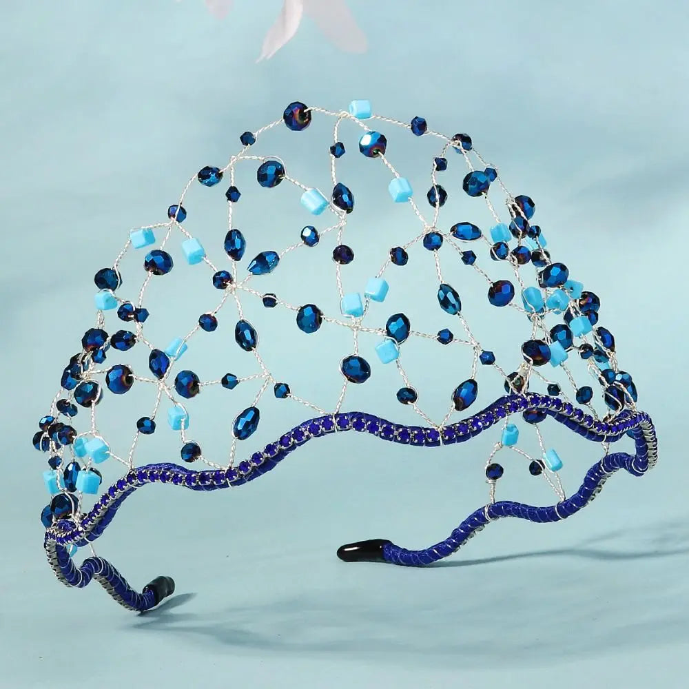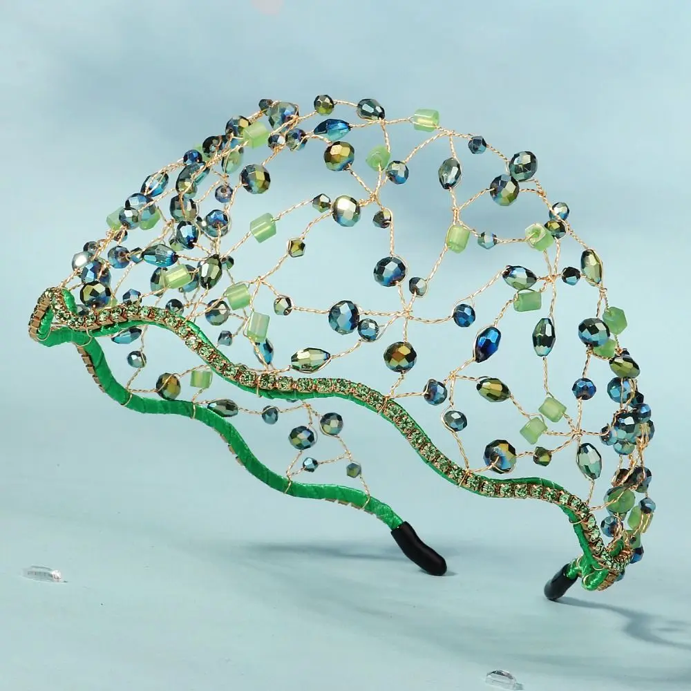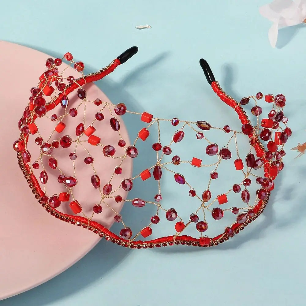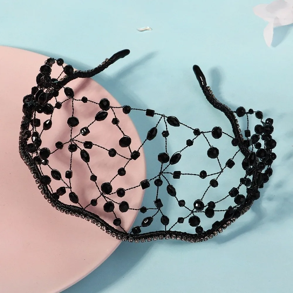Handmade Crystal Beads Hair Net Crown Wedding Headpieces Hair Jewelry Sparkling Rhinestone Tiara Hair Hoop Elegant Headbands