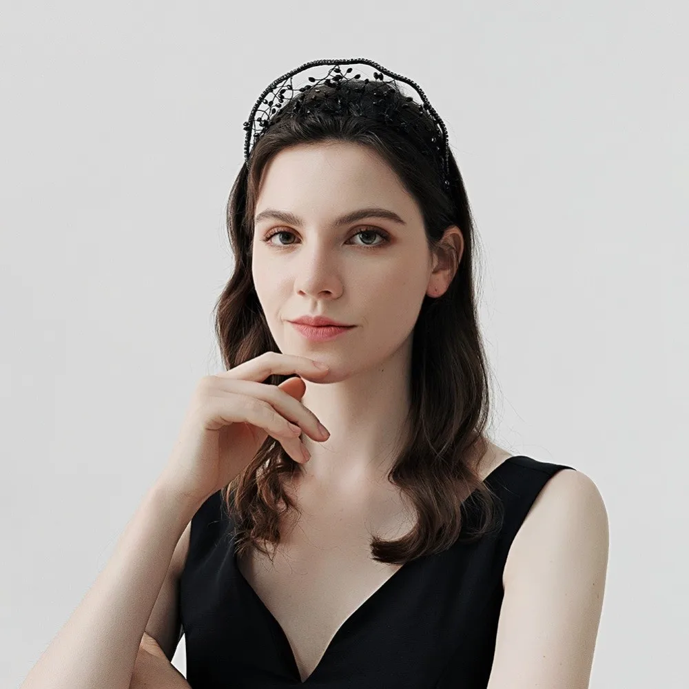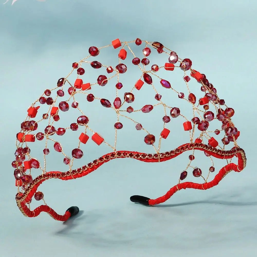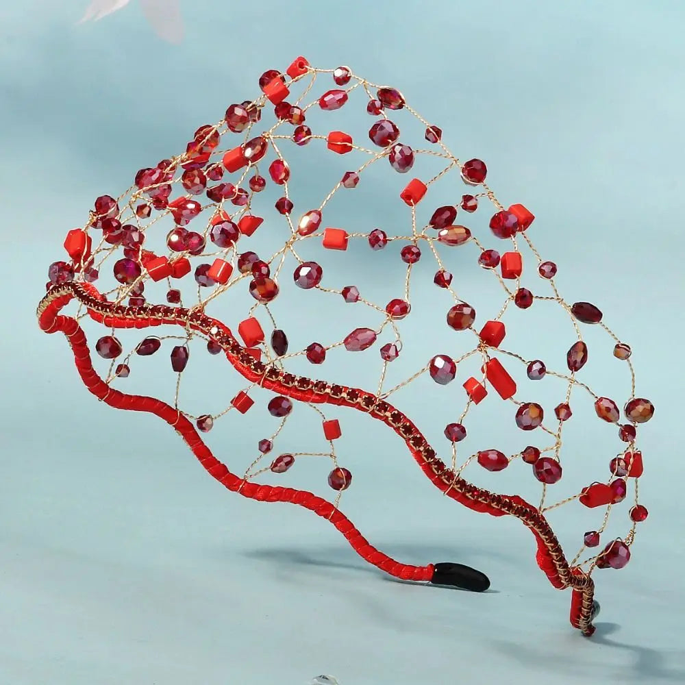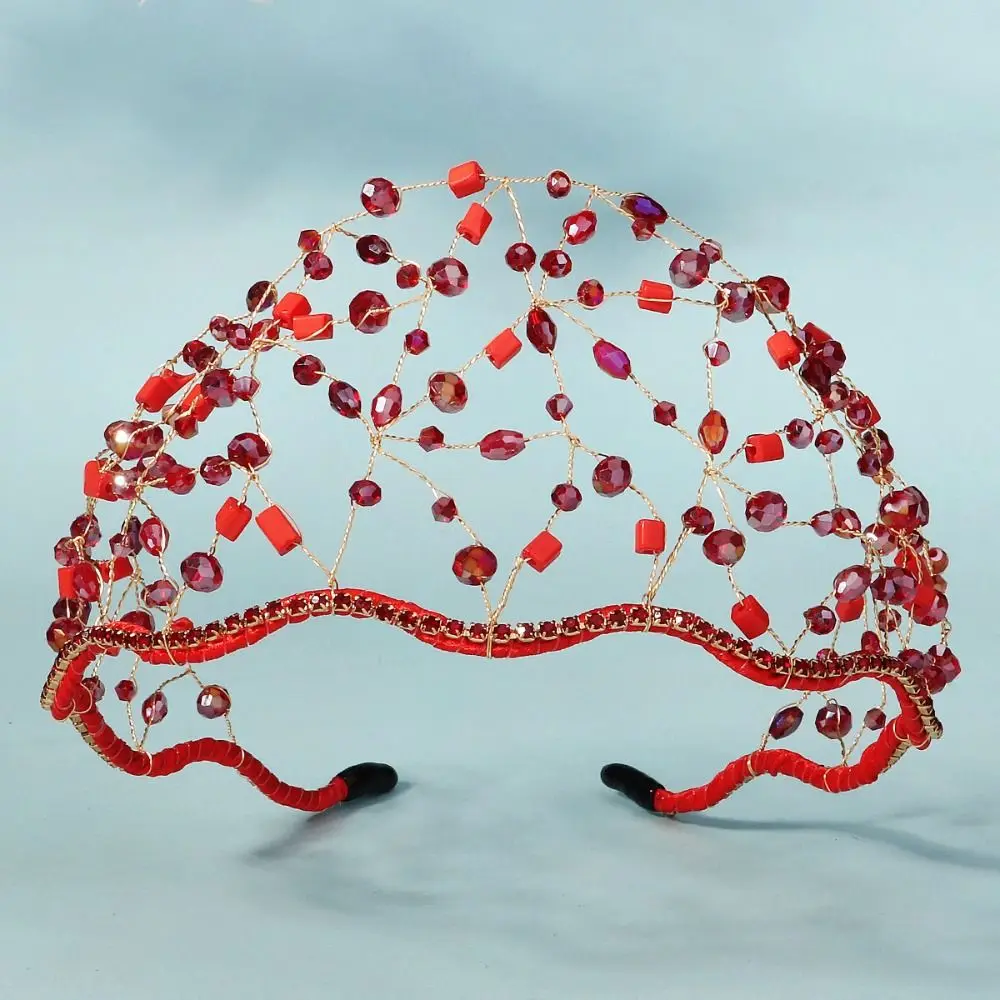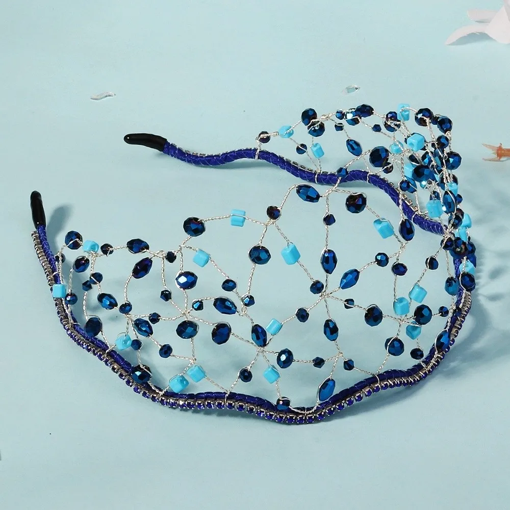 Handmade Crystal Beads Hair Net Crown Wedding Headpieces Hair Jewelry Sparkling Rhinestone Tiara Hair Hoop Elegant Headbands