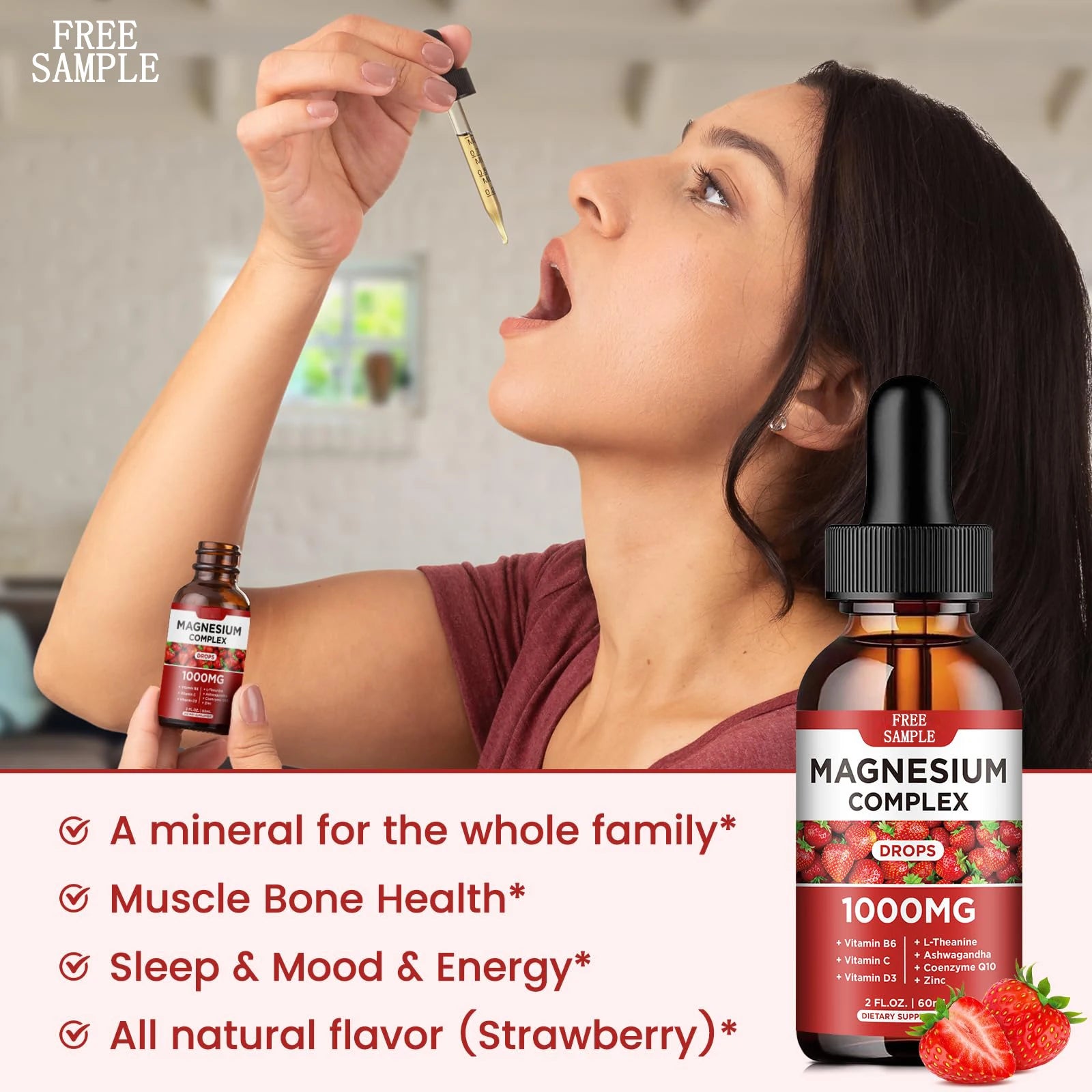 Liquid Ashwagandha Magnesium Citrate Supplement Drops Oral Dosage with Calcium Zinc Vitamin D3 B6 B12 CoQ10 Potassium Magnesium