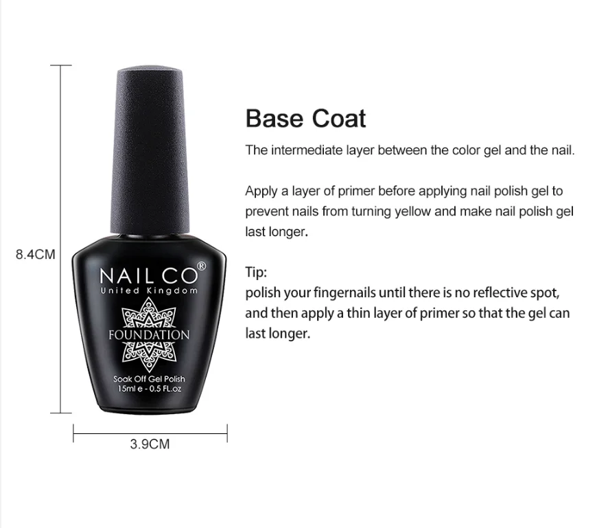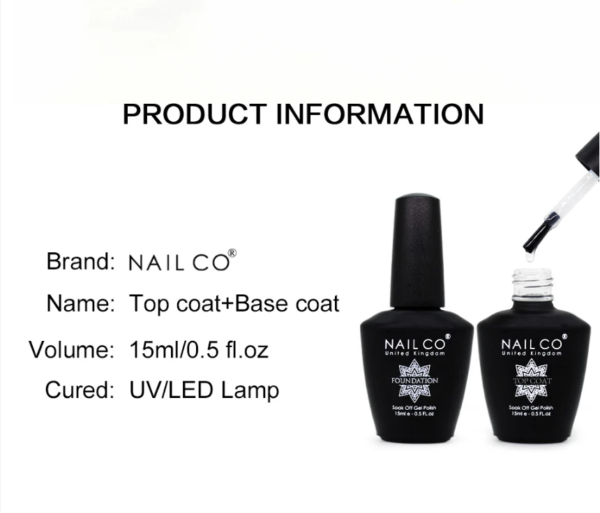 NAILCO 15ML Top coat Base coat Gel nail polish nails art Semi Permanent Lacquer Varnish Hybrid nail supplies for professionals