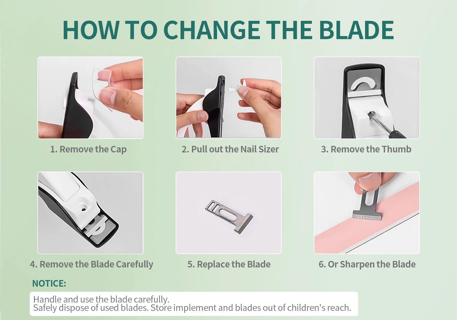 Length Control: Achieve your desired nail length with our innovative clipper, equipped with a built-in size selector offering various adjustable lengths.