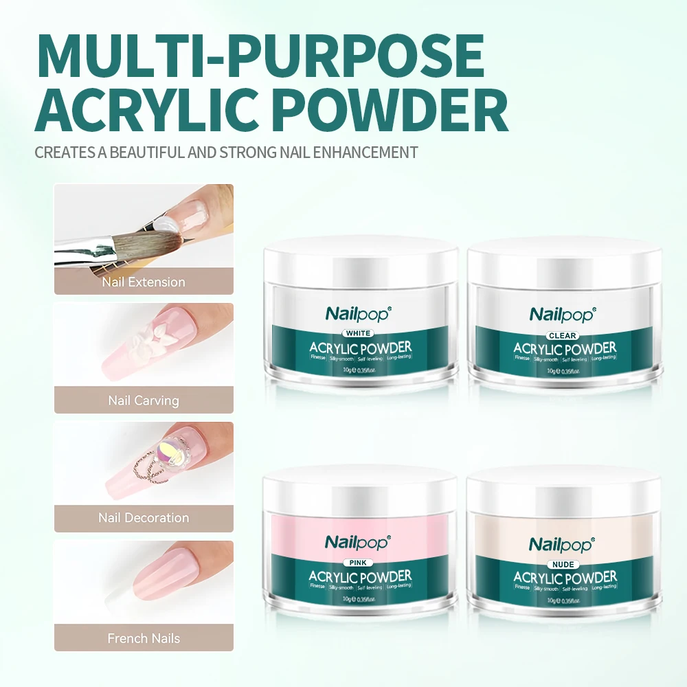 NAILPOP Professional Acrylic Nail Powder Clear/Nudes/Pink Ultra Fine for Acrylic Nail Art 3D Tips Carving French Nails Extension