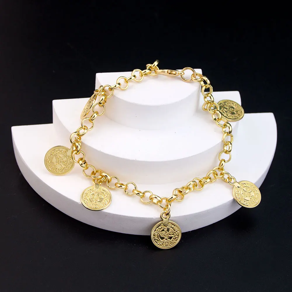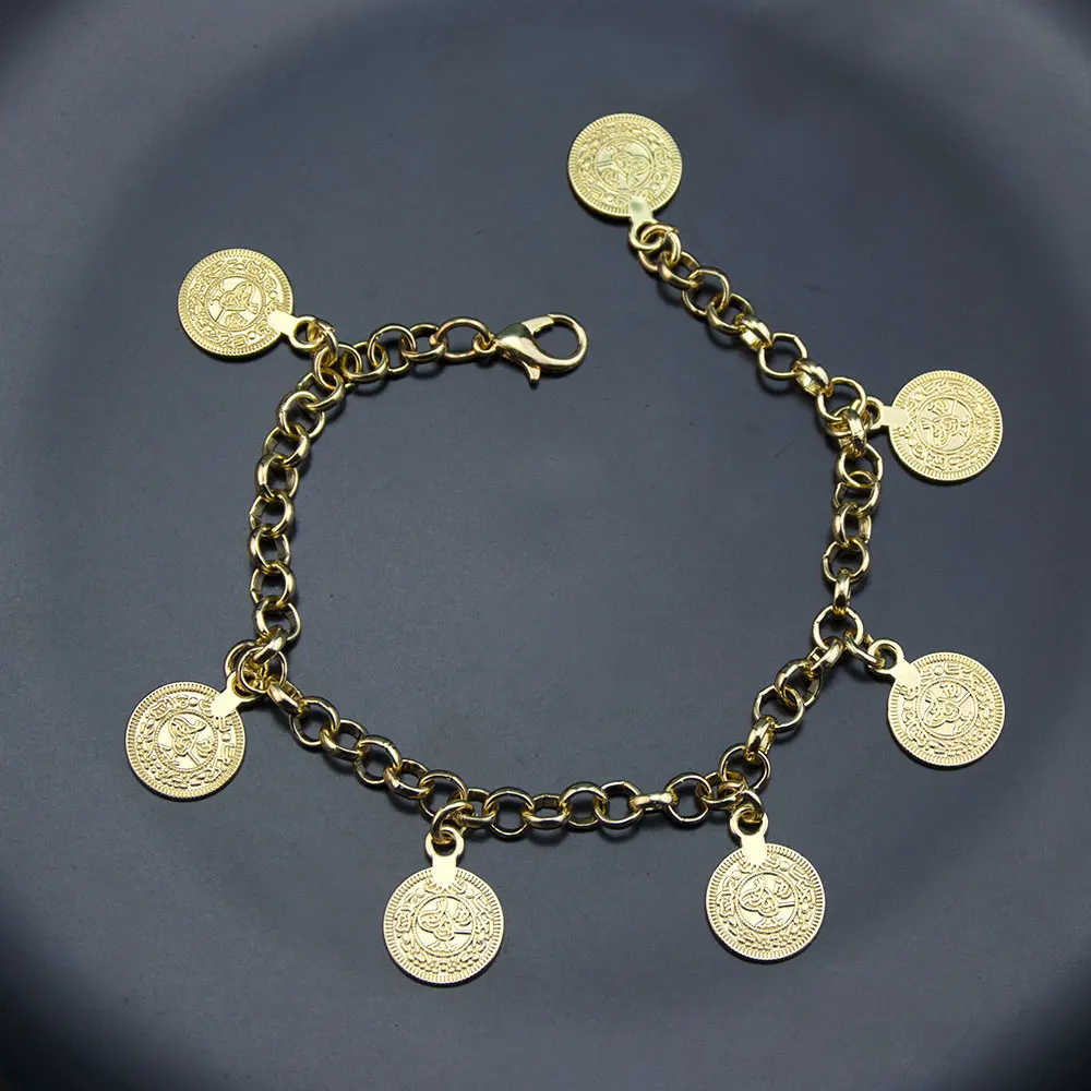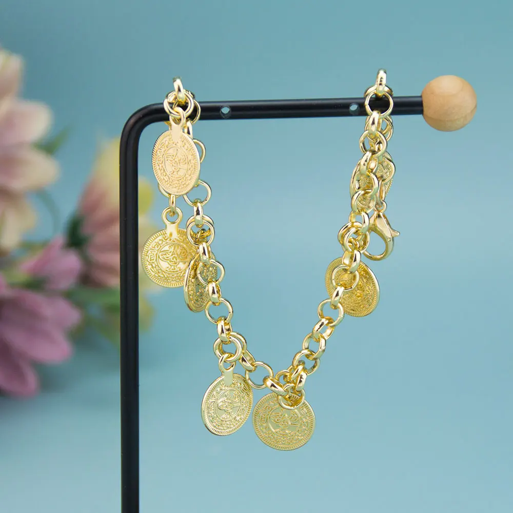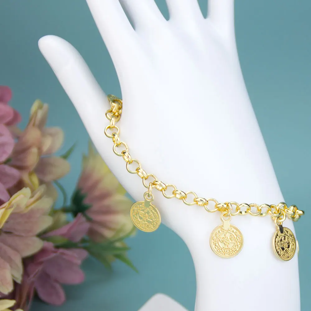 Neovisson Fashion Style Gold Color Coin Bracelet Chain Elegent Bridal Wedding Jewelry Ladies Favorite Gift Accessorie