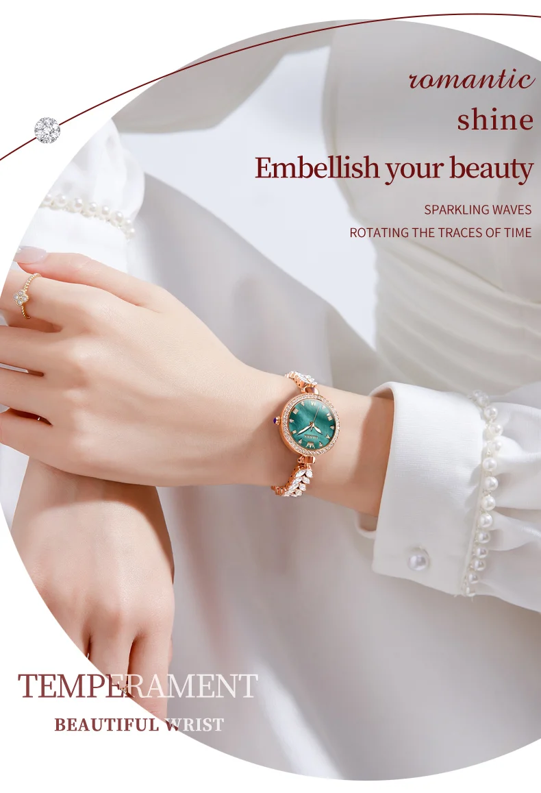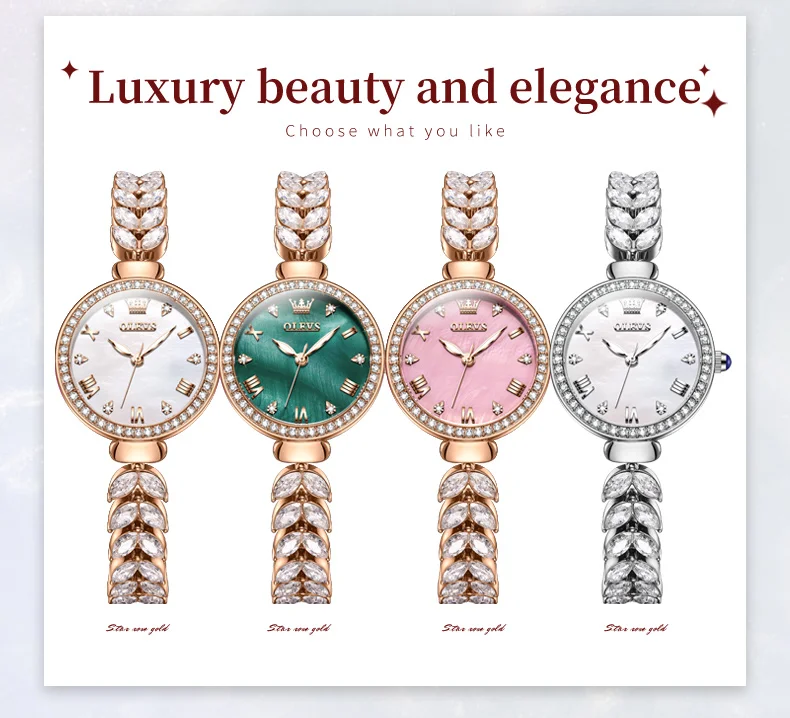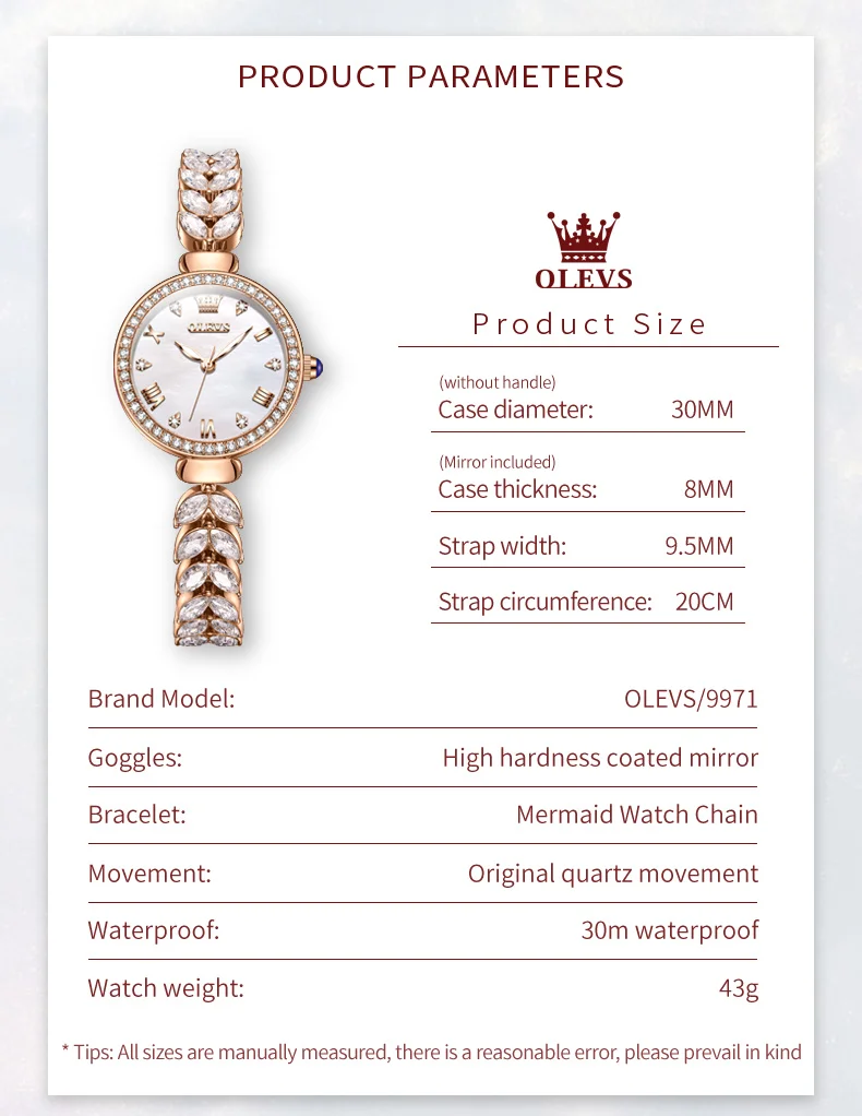 OLEVS 9971 Diamond Fishbone Women Watch Luxury Brand Quartz Watch Elegant Bracelet Set Gift Box Waterproof HD Dial Women Watch