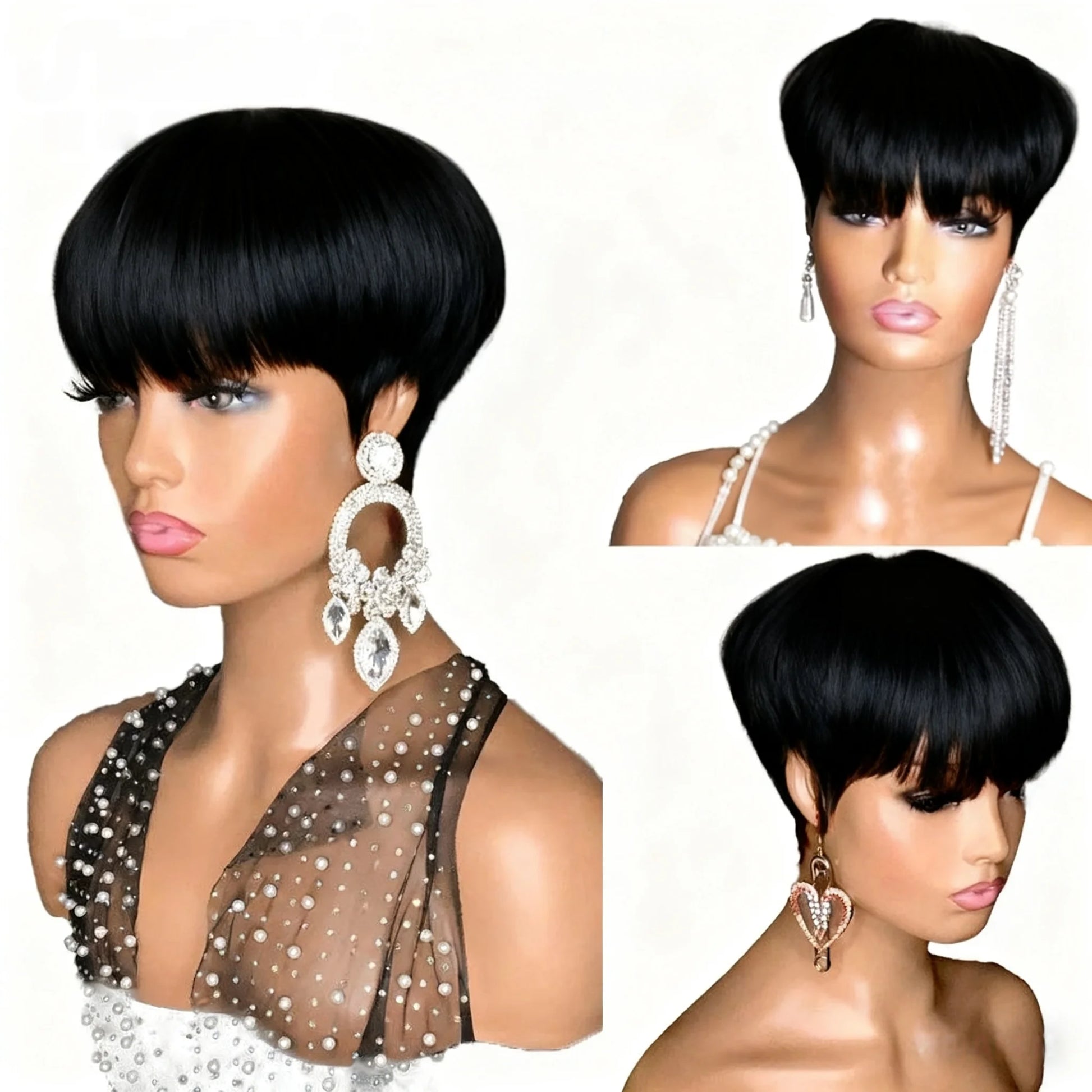 Ombre Color Pixie Short Cut Bob Wig with Bangs