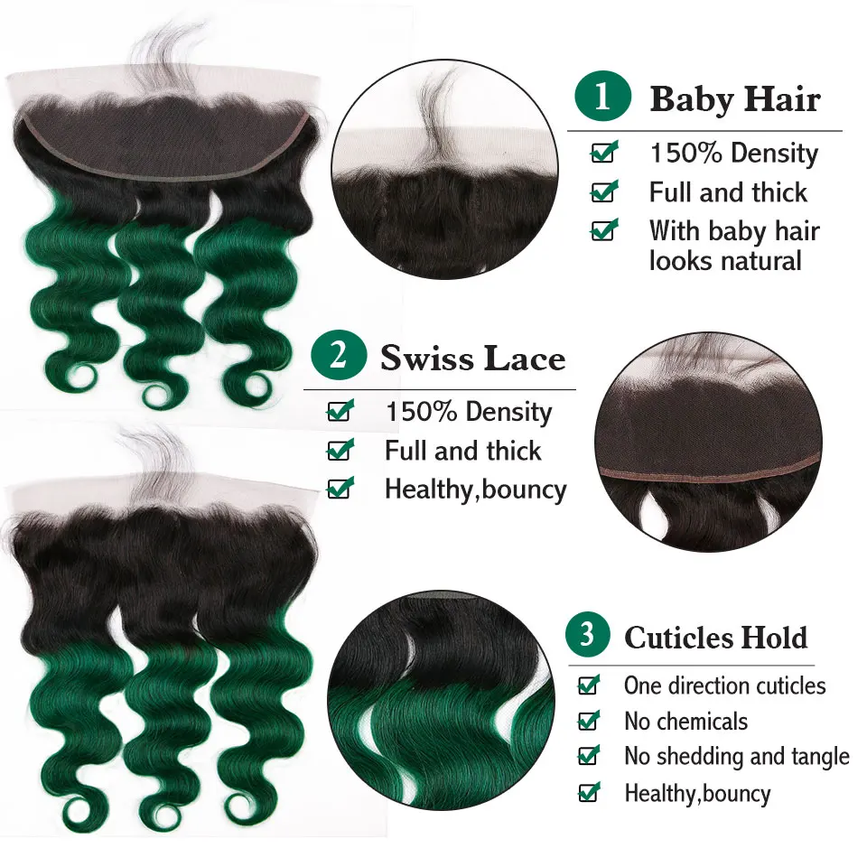 1B Green Color Hair Bundles With Frontal Can Be Restyled to Any Fashion Hairstyles