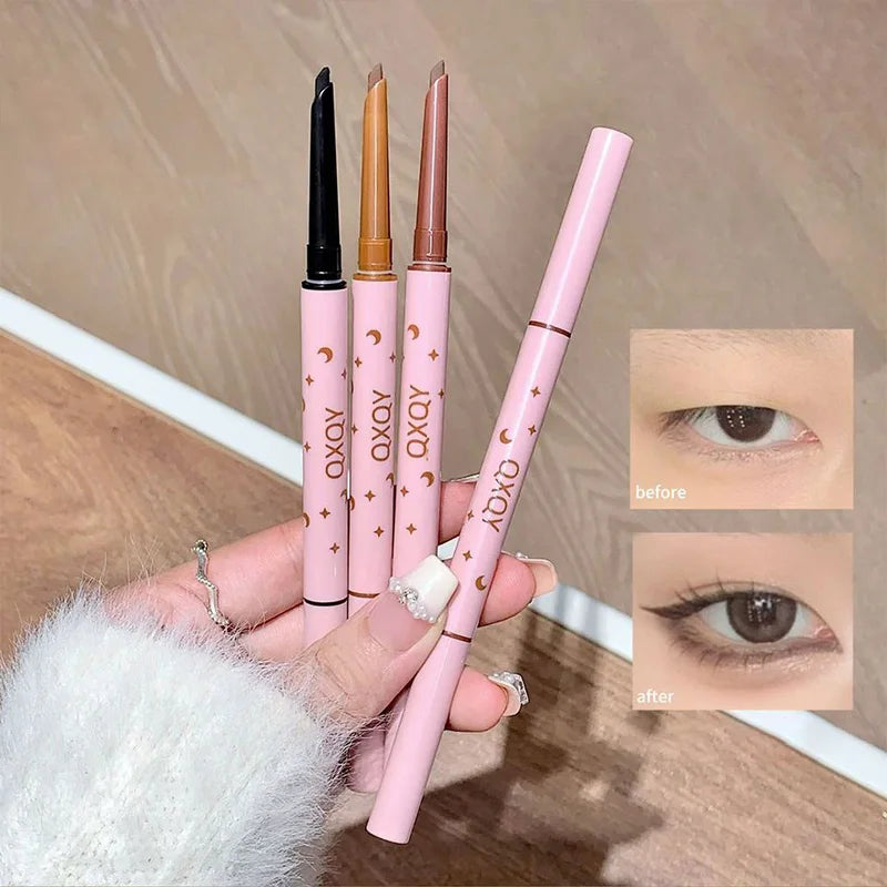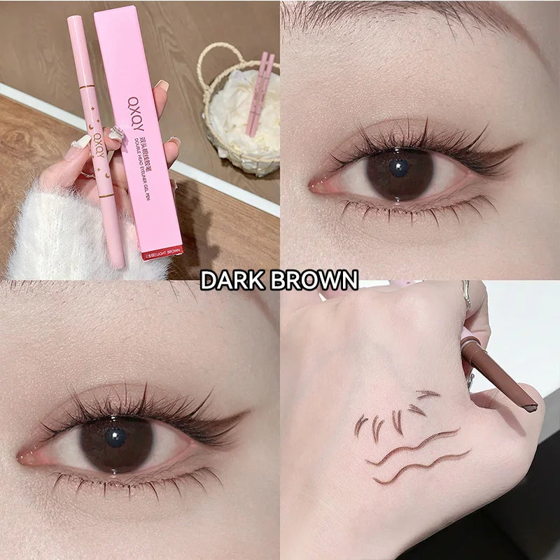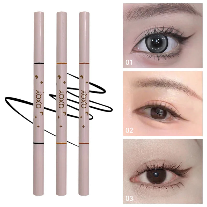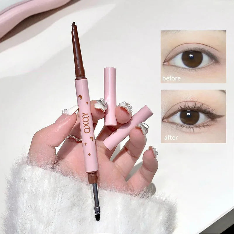 QXQY Double-head eyeliner, two-in-one eyebrow pencil and under-eye eyeliner, with brush head, long-lasting makeup,Lying silkworm