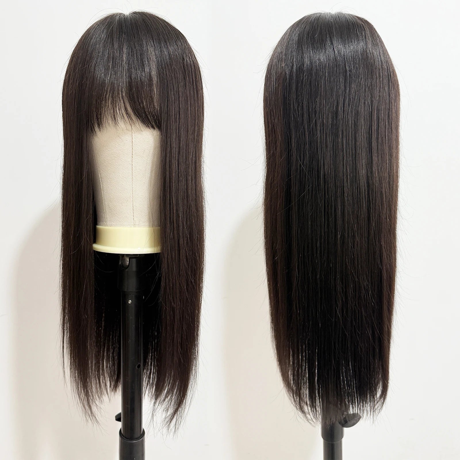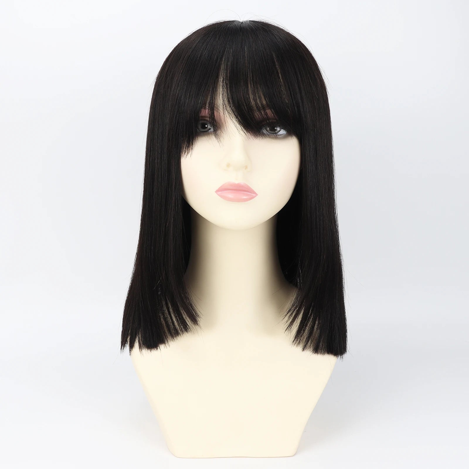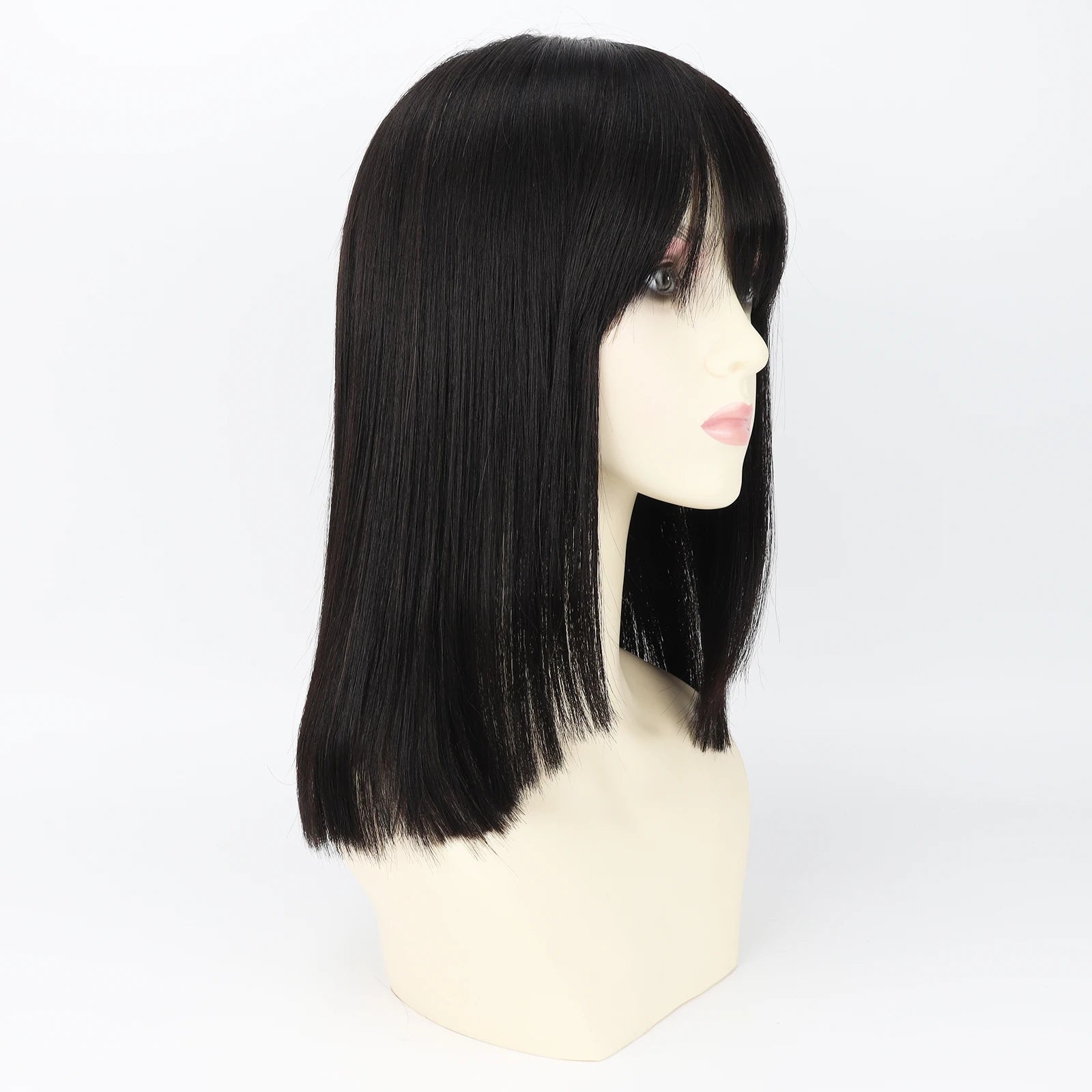 Real Virgin European Human Hair Wig with Bangs 6x6“ Silk Base Wig for Women 22” Bob Hair with PU Around Everyday Wear