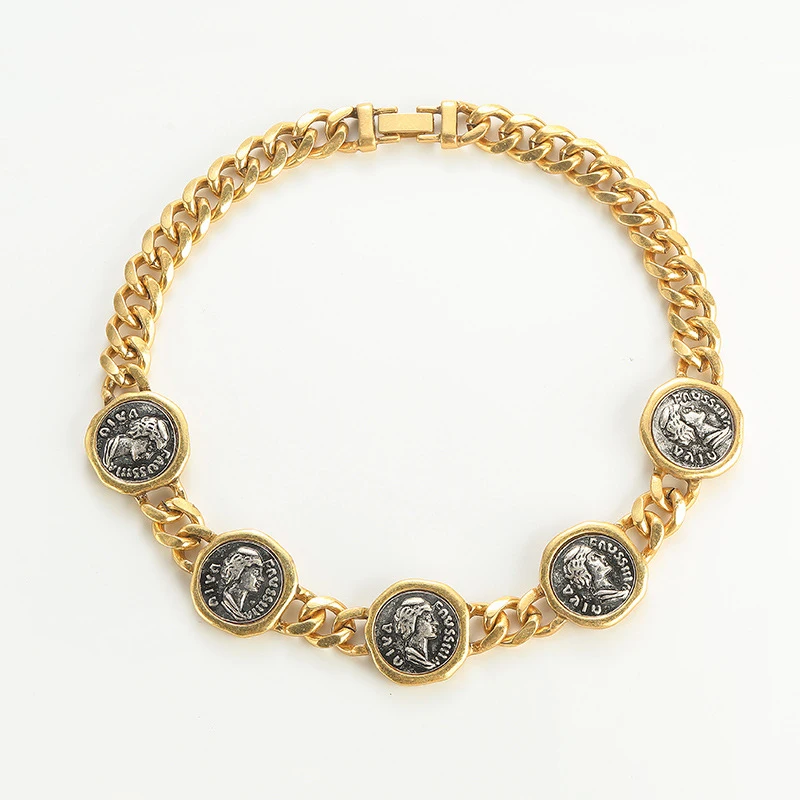 Retro Beauty Head Coin O-Shaped Chain Exaggerated Chocker