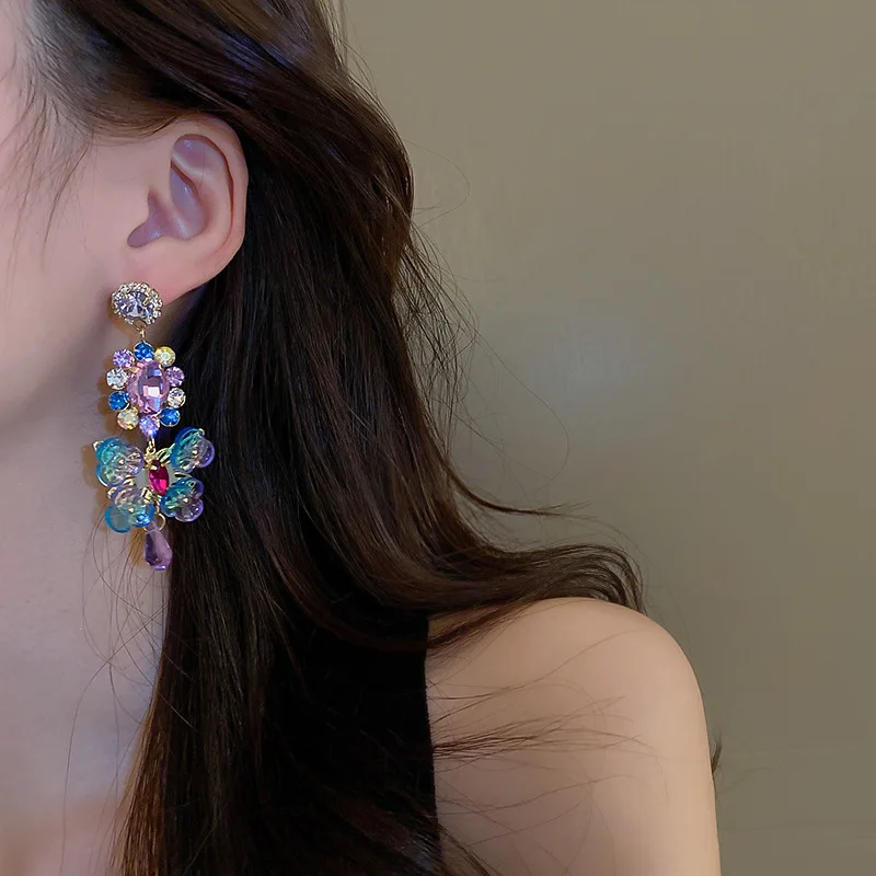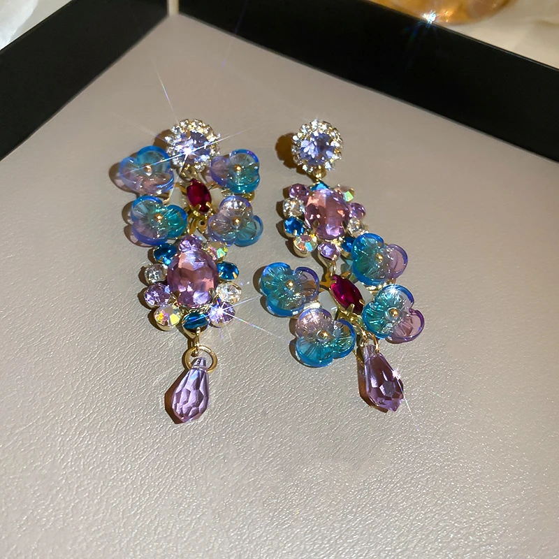 Rhinestones Asymmetric Artificial Crystal Flower Round Light Luxury Water Drop Dangle Earrings Bohemian Fashion Design Earring