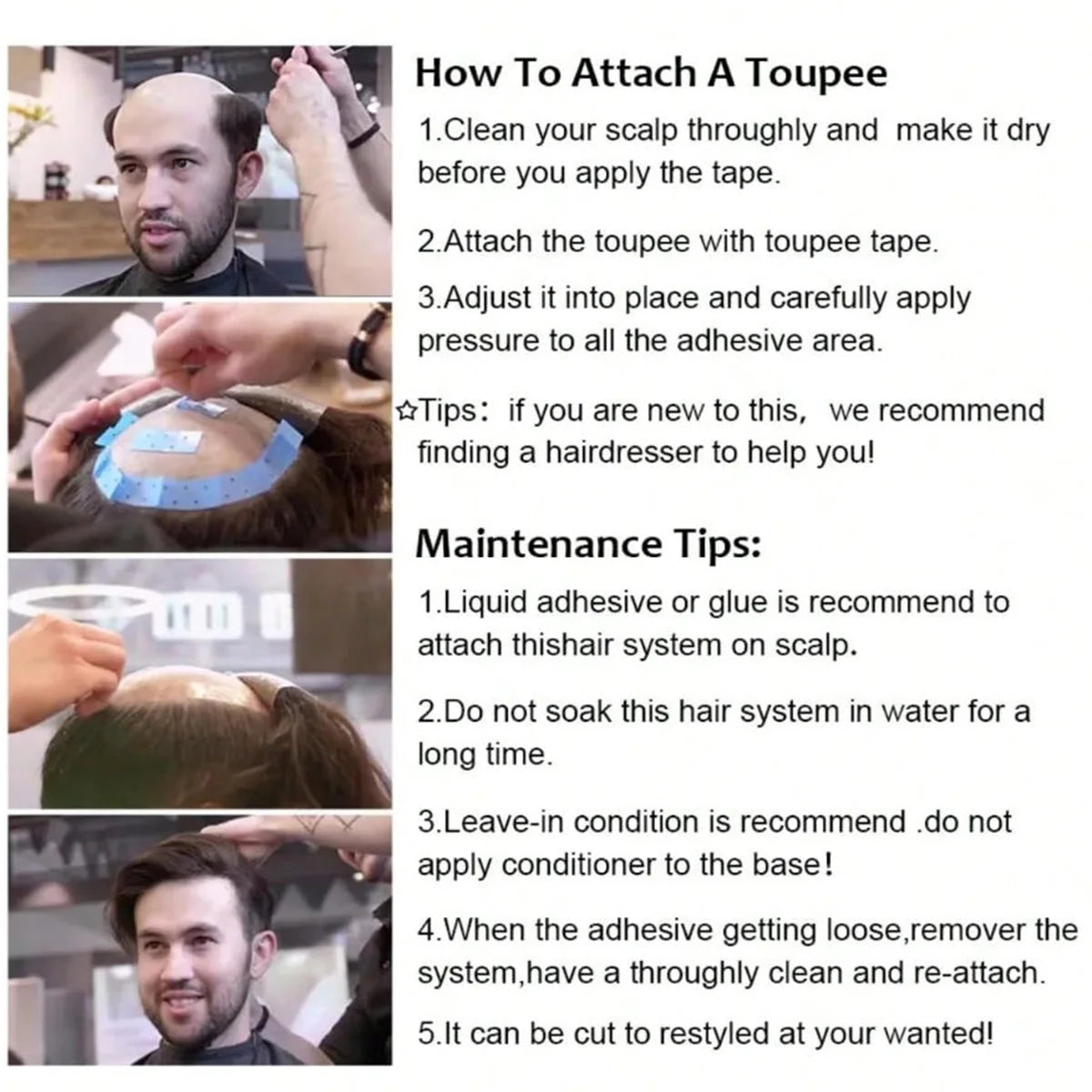 Toupee For Men Ultra-Thin Skin Microskin Male Hair Prosthesis Premier Toupee for Men Men's Wig 100% Natural Human Hair