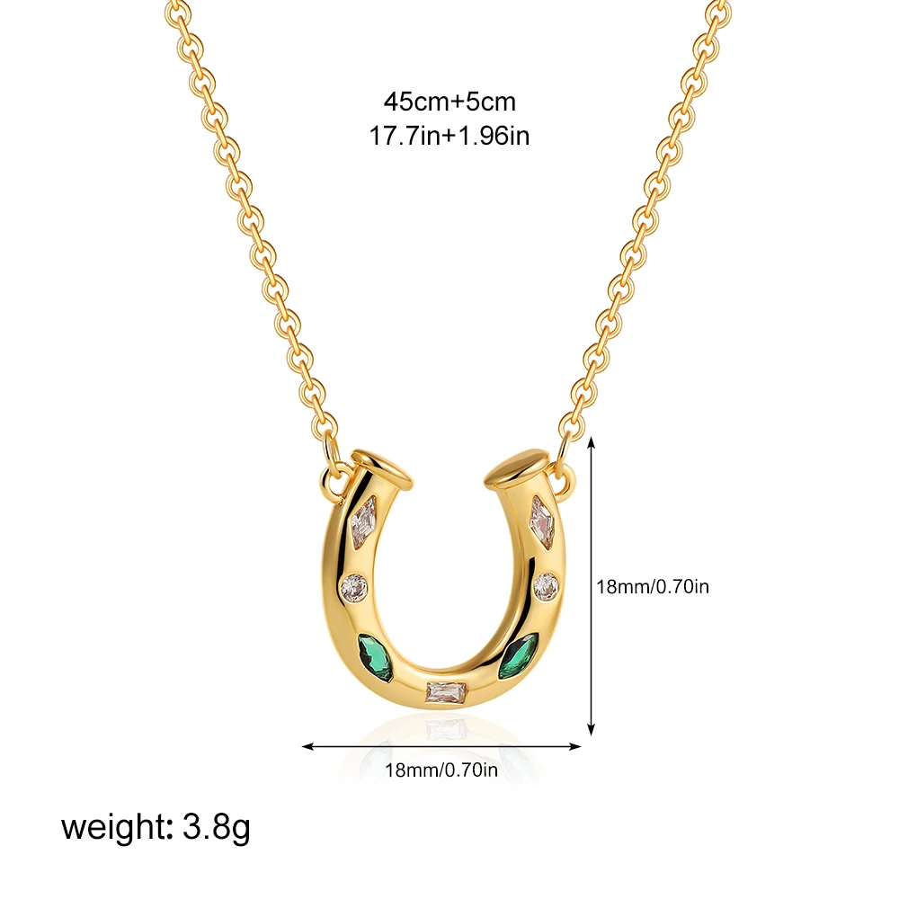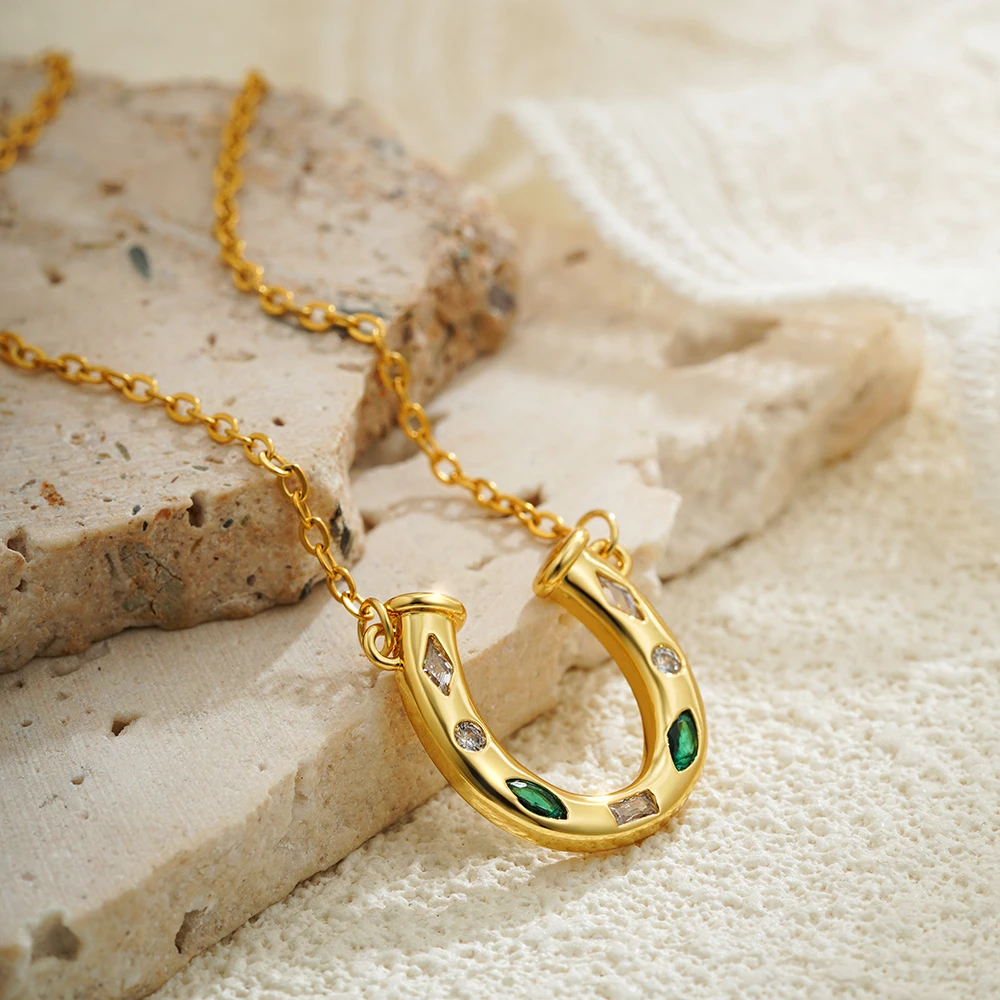 U-shaped element Horse's hoof Green Zircon Necklacelucky symbol embedded Zirconium Necklaces women's stainless steel Lady Jewelr