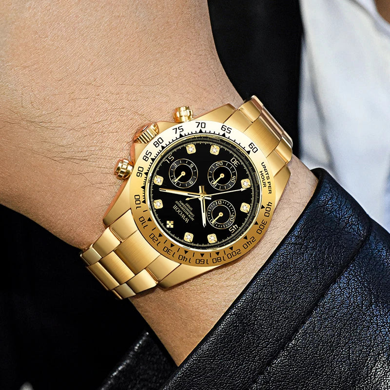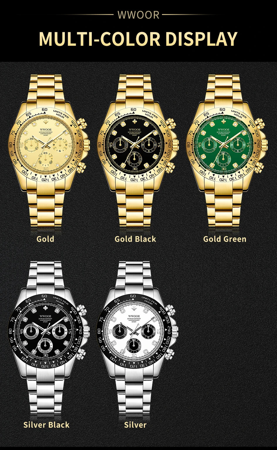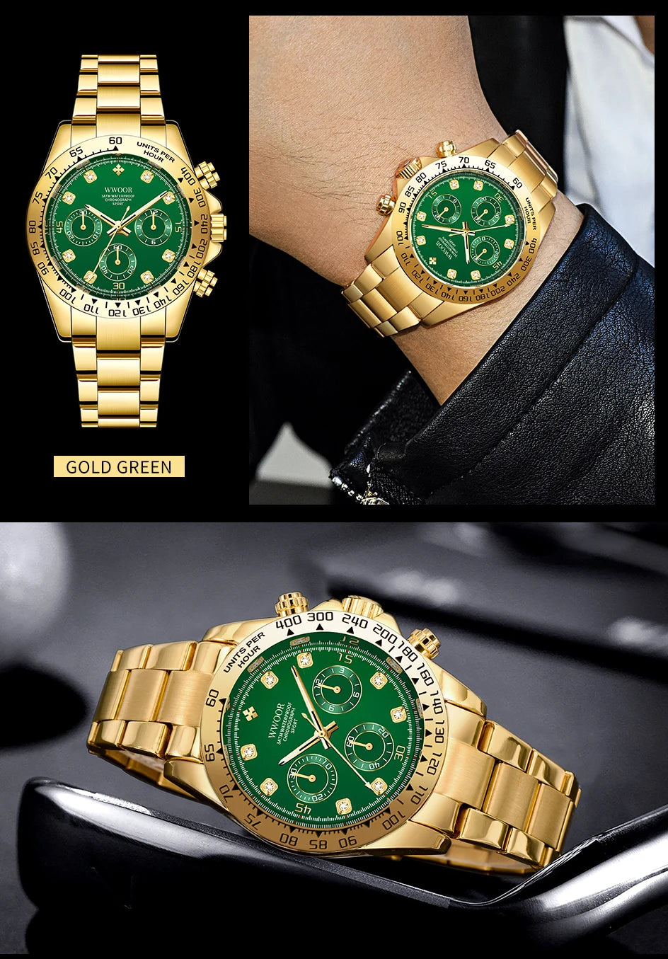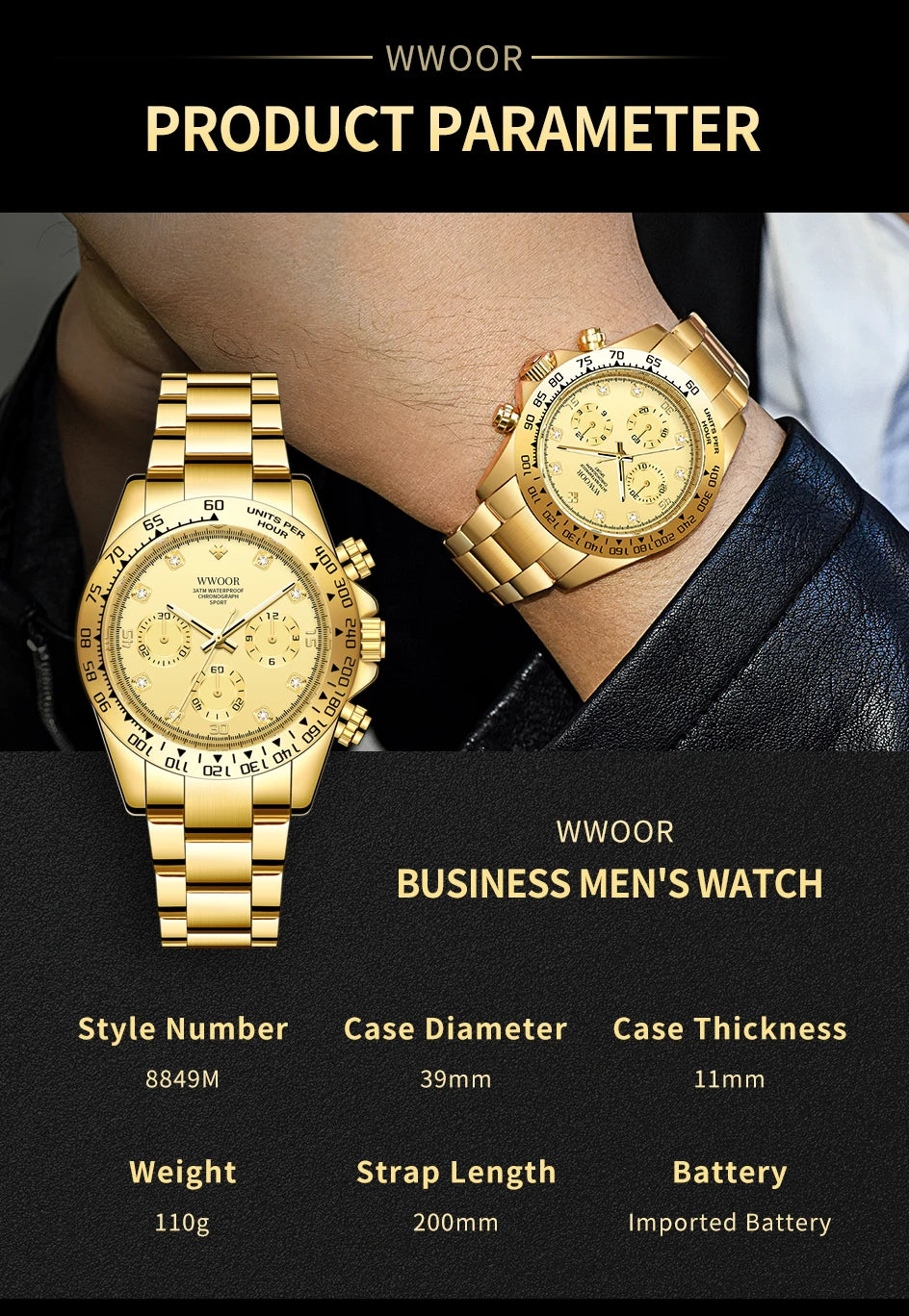 WWOOR 2024 New Mens Watches Top Brand Quartz Japanese Chronograph Stopwatch Waterproof Stainless Wristwatches Relogio Masculino