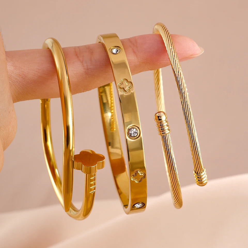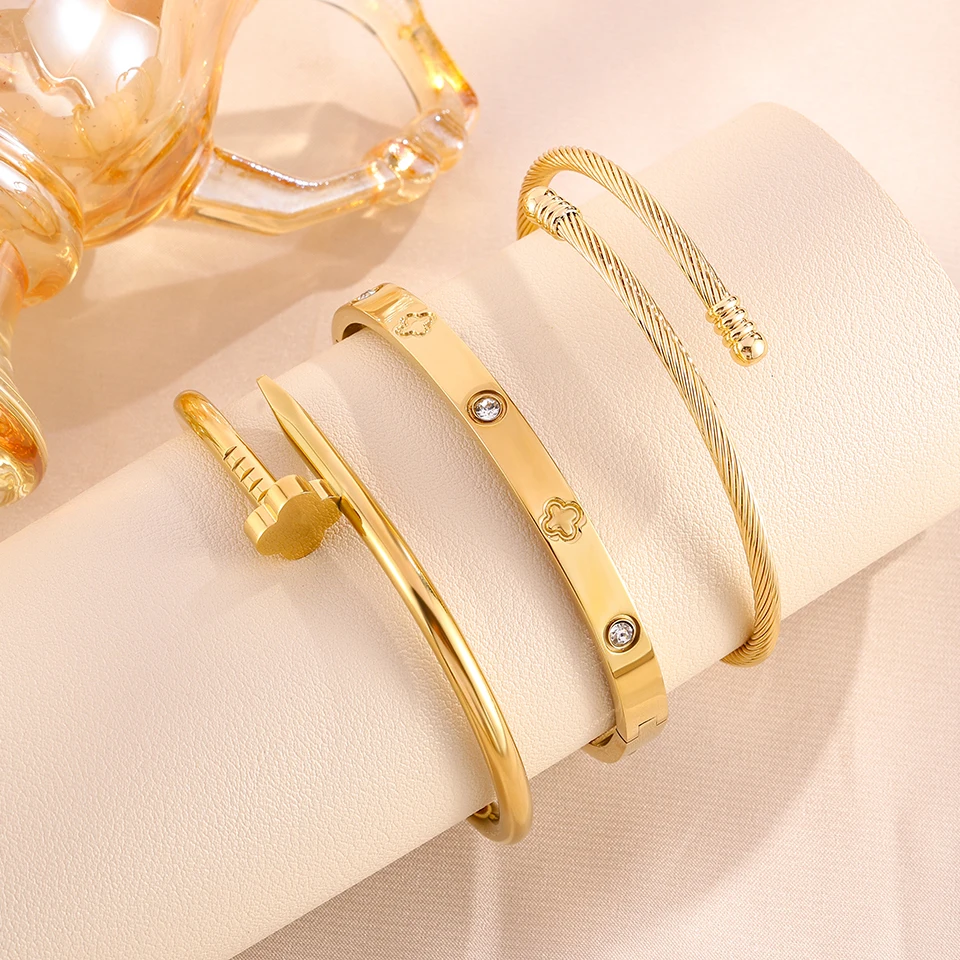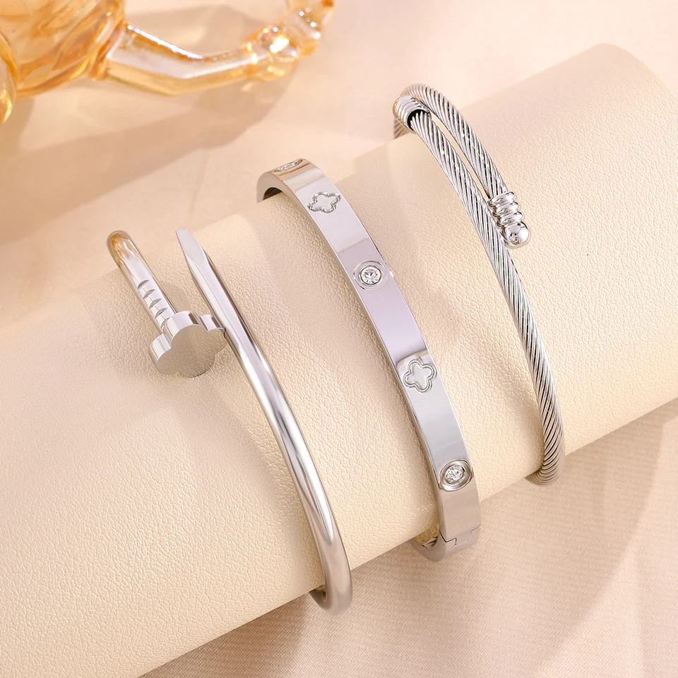 Yupsk New Creative Four-leaf Flower Series Stainless Steel Bracelets Set for Women Versatile Stackable Jewelry Couple Gift